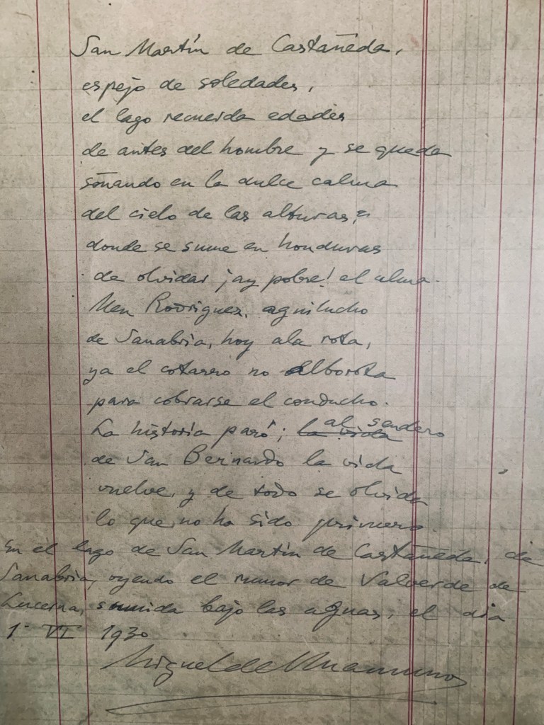 Bouzas impulsó el descubrimiento del lago de Sanabria para el mundo. Por su hospedería pasaron personas de renombre en el mundo de las artes, las ciencias y la política. De entre todas las visitas cabría destacar la de Miguel de Unamuno en 1930, que le serviría para gestar su novela “San Manuel Bueno, mártir”, ambientada en la legendaria villa de Valverde de Lucerna, a orillas del lago. Llegó a Sanabria invitado por Honorino Requejo. Se conserva el libro de visitas de la hospedería donde Miguel de Unamuno escribiría uno de los poemas con los que abre la novela (San Martín de Castañeda, espejo de soledades…) y, debajo: “En el lago de San Martín de Castañeda, de Sanabria, oyendo el rumor de Valverde de Lucerna, sumida bajo las aguas, el día 1 VI 1930” (ver foto abajo). En una carta de 1936 el periodista soviético Ilyá Ehrenburg afirmó haber visto durante su visita a Bouzas “hace cinco años” un libro de firmas de huéspedes con unas líneas sobre la belleza del paisaje circundante escritas por Unamuno. Más tarde, en 1959, Joaquín García Aroca reprodujo la página autógrafa en blanco y negro en su libro “El lago de Sanabria: sitio natural de interés nacional, paisaje pintoresco”.