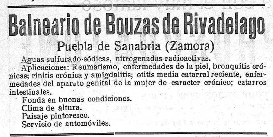 En cuanto a los manantiales, en 2006 la ficha de campo del Balneario de Bouzas en el “Estudio y Evaluación del potencial hidromineral de Castilla y León” lo clasifica como inactivo e indica que “la actual dueña, Jesusa Requejo, vive actualmente en Puebla de Sanabria y estaría dispuesta a negociar cualquier puesta en valor de estos antiguos baños y sus terrenos aledaños”