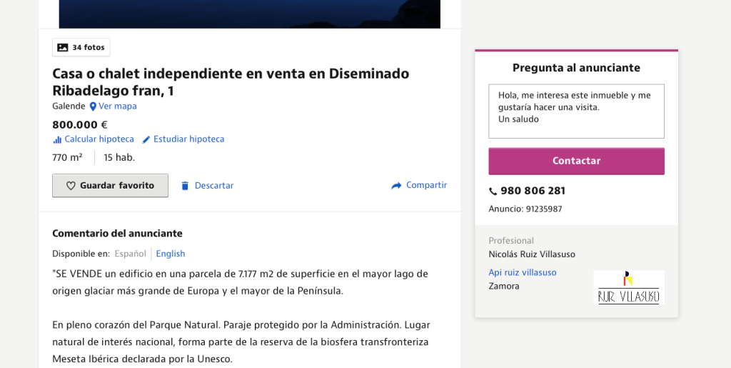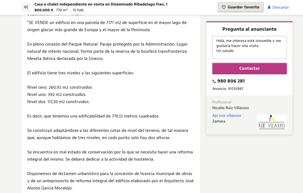 En la margen sur del lago de Sanabria, sobre un enorme peñón que baja casi vertical desde la superficie hasta el fondo del mismo, en el término de Ribadelago y ayuntamiento de Galende, se encuentran los restos de la antigua hospedería del Balneario de Bouzas. Una explotación hoy abandonada pero que contribuyó tiempo atrás a la divulgación y protección del lago de Sanabria y su entorno.