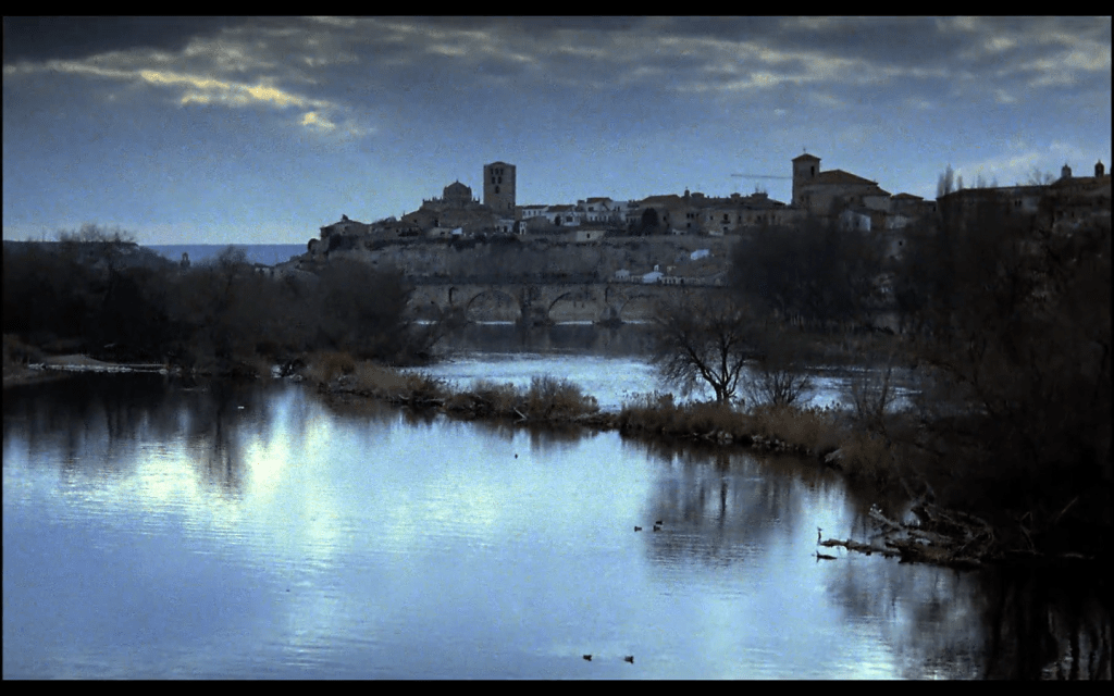 Pero de Zamora hay poco en esta obra maestra, pues las localizaciones del rodaje fueron principalmente Estella (Navarra), Vitoria (País Vasco), El Escorial (Madrid) y Ezcaray (La Rioja). Sin embargo, el minuto largo que suman las tres secuencias grabadas en Zamora, contribuyen de forma notable a la belleza y al halo de misterio que empapa a toda la cinta. Tres poderosas vistas de la ciudad desde el río, sumida quizás en el «hermoso combate de la luz por iluminar a contracorriente unos fragmentos de vida» del que habló Carlos F. Heredero en su crítica de la película.