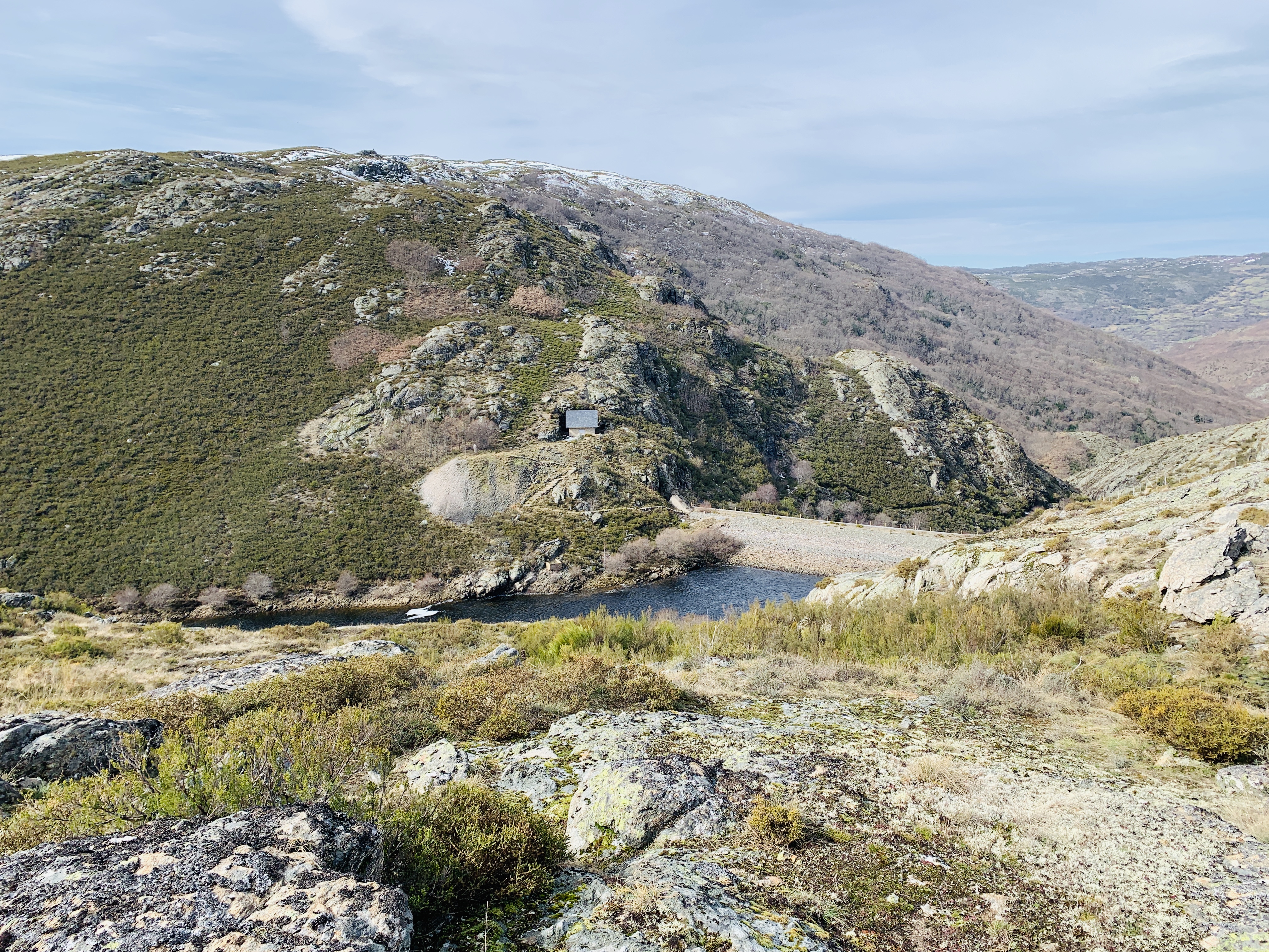 Se alcanza la cima más alta, con probabilidad de nieve en los meses de invierno, desde donde se divisa por primera vez el embalse y una hermosa panorámica del valle de Valdesirgas. Continuamos la ruta buscando los puentes que nos permitirán cruzar el arroyo más próximo y el de Valdesirgas y así bordear el embalse. Antes de bajar se pueden observar diversas construcciones de pastores y ganaderos.