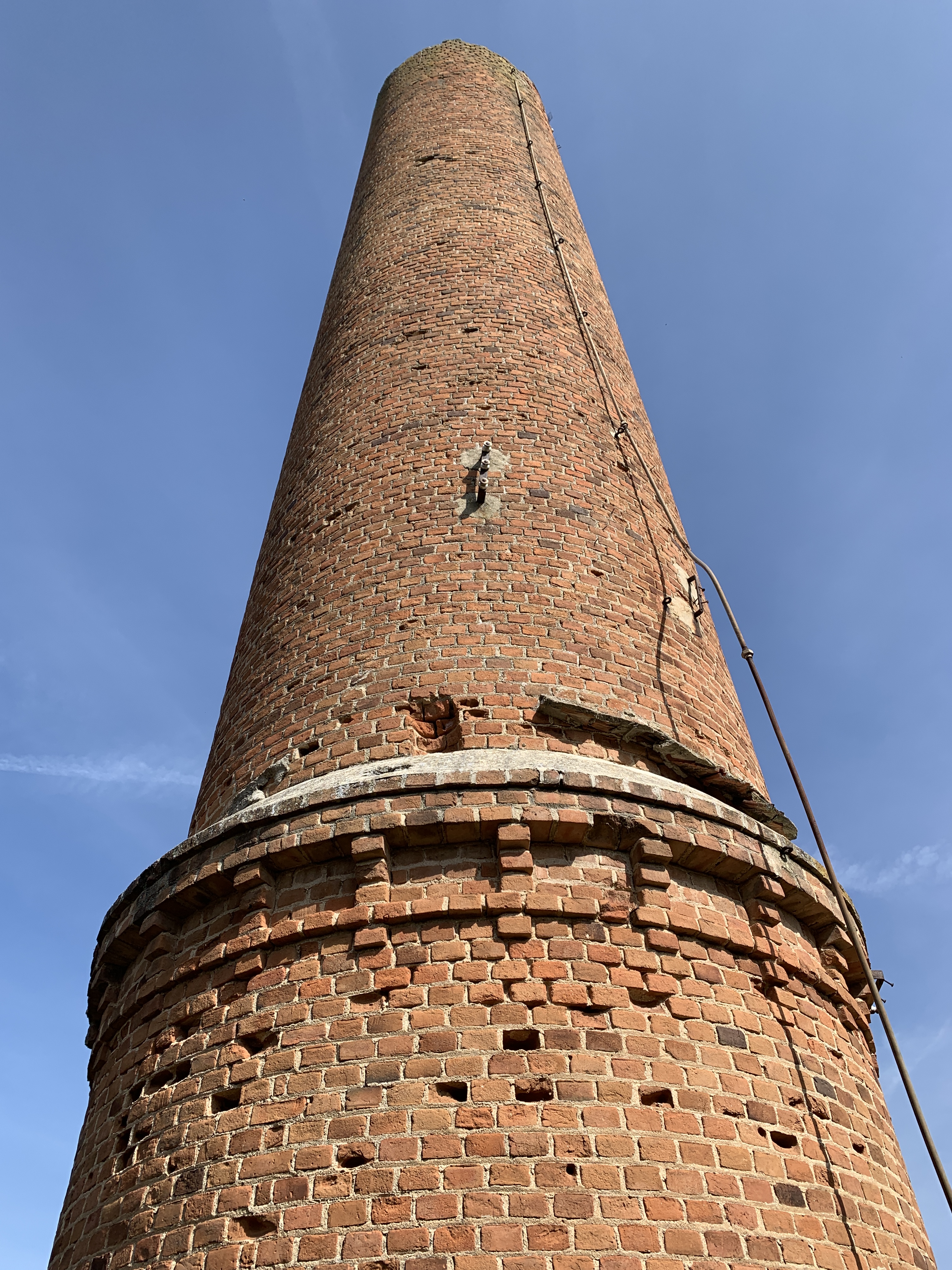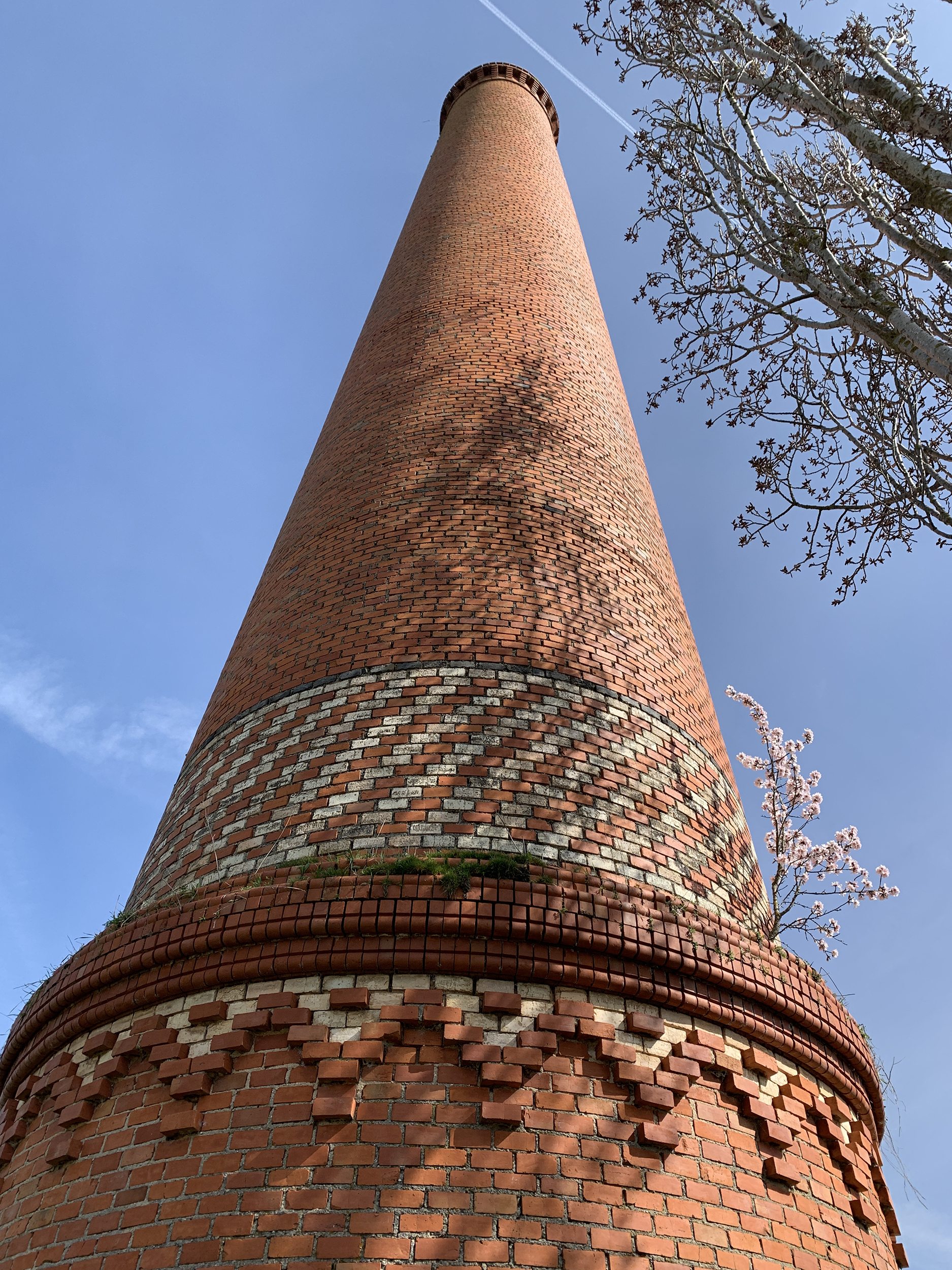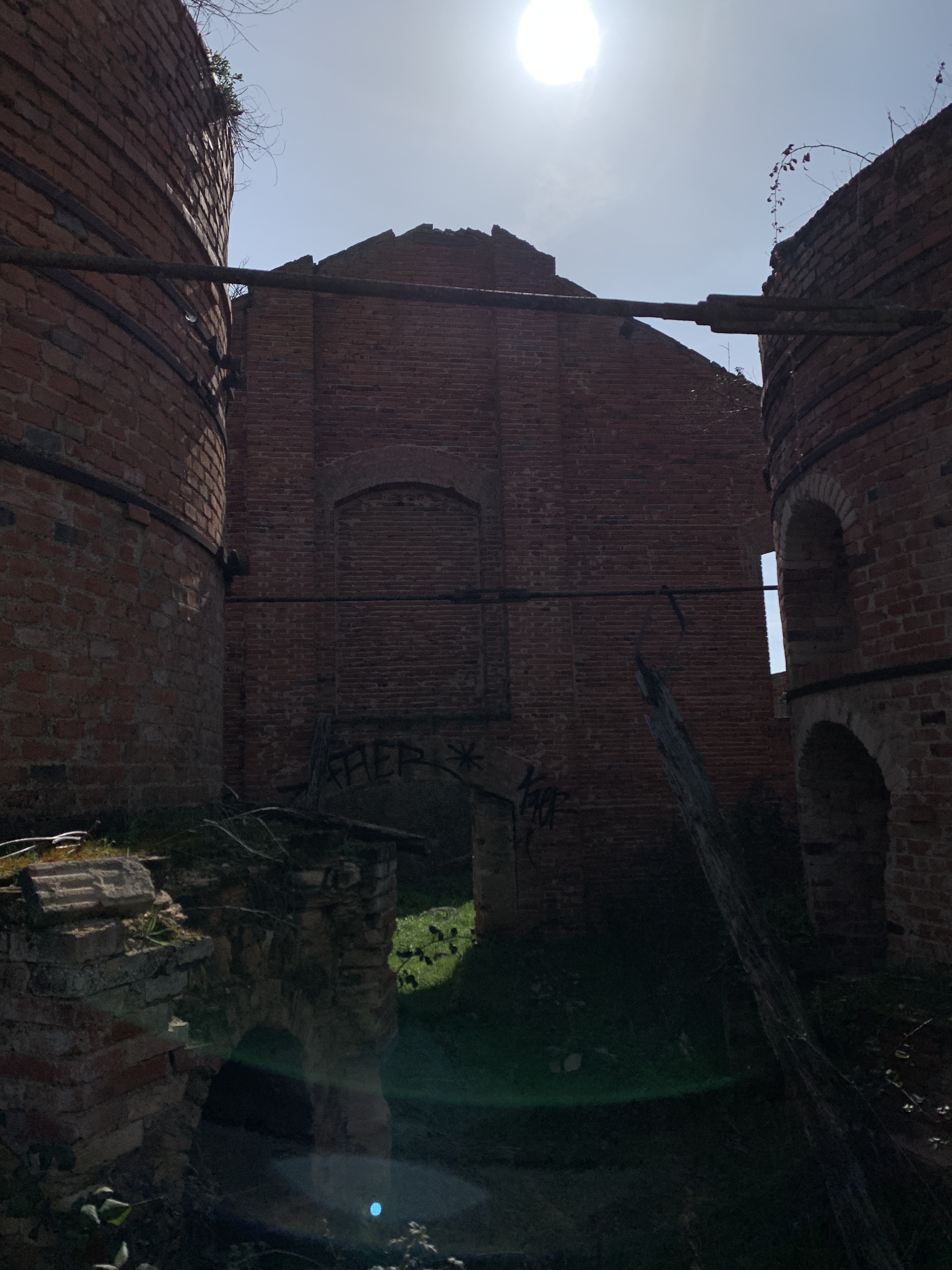 Desde la carretera se distinguen claramente dos tipos de ruinas, las correspondientes a la fábrica más antigua, de principios del s.XX, y las pertenecientes a construcciones más recientes. Destacan las dos chimeneas, especialmente la más alta con sus adornos cromáticos. Entre las grietas ha conseguido crecer un almendro, como se aprecia en las fotos superiores.