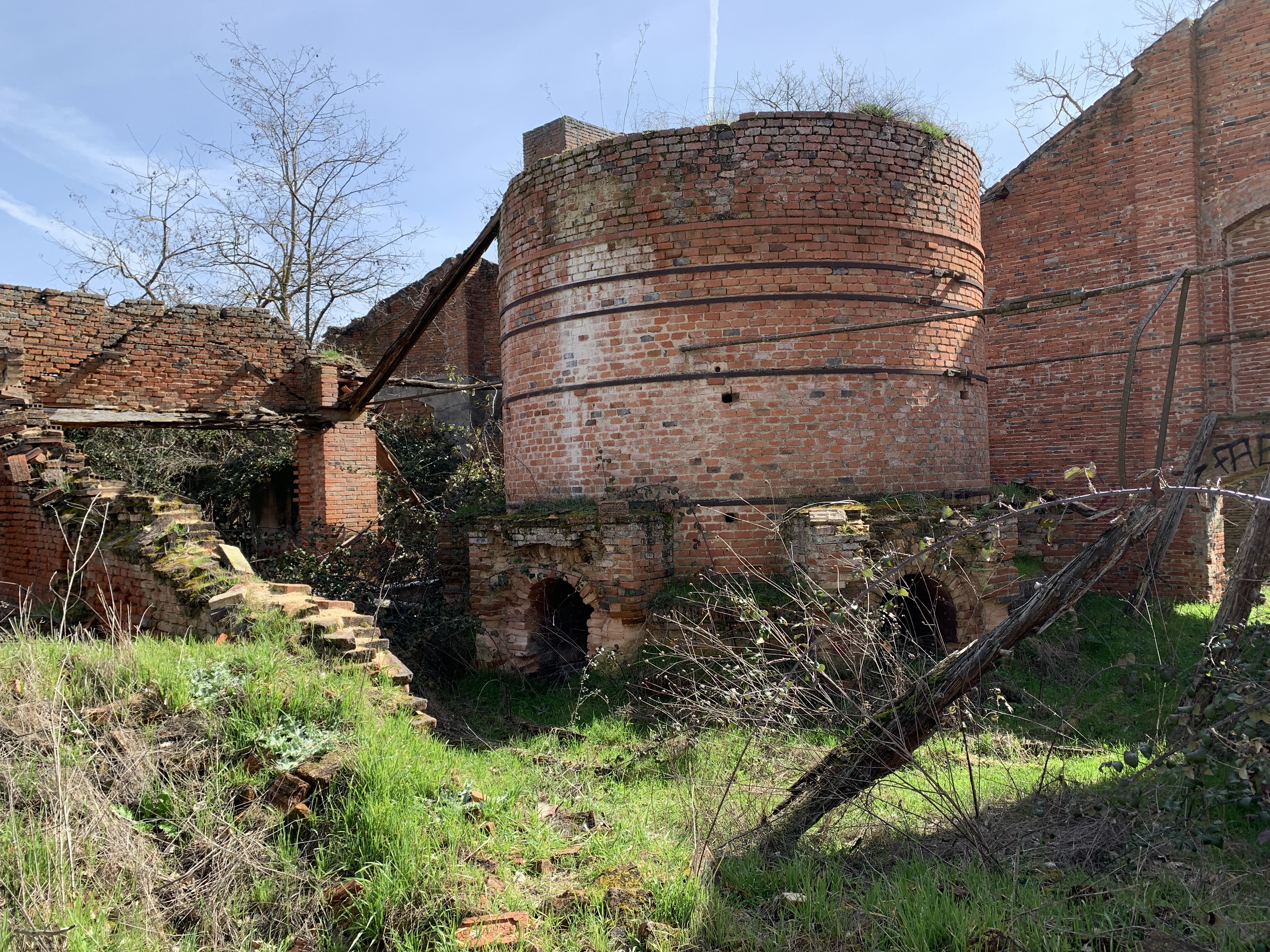 A un lado de la carretera ZA-L-2106 que une El Perdigón con Morales del Vino y muy cerca de la estación de ferrocarril que compartían ambas localidades, se encuentran los restos de la primera tejera industrial abierta en la provincia de Zamora. La fábrica “San Antonio” fue creada por Julio Alonso Santos en los primeros años del siglo XX y el nombre supongo que hace alusión al patronazgo que ejerce el santo lisboeta sobre el gremio de la albañilería.