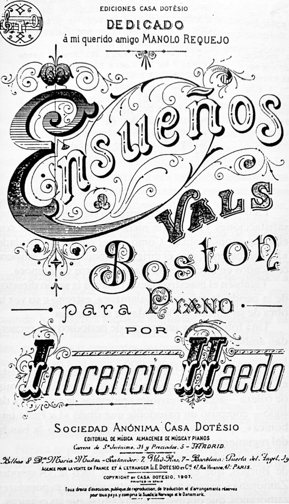 OBRASEnsueños Portada de la partitura de «Ensueños: vals Boston para piano» por Inocencio Haedo (1878-1956)Editada por Casa Dotesio en 1907 Compártelo: Haz clic para compartir en X (Se abre en una ventana nueva) X Haz clic para compartir en Facebook (Se abre en una ventana nueva) Facebook Me gusta Cargando... Relacionado