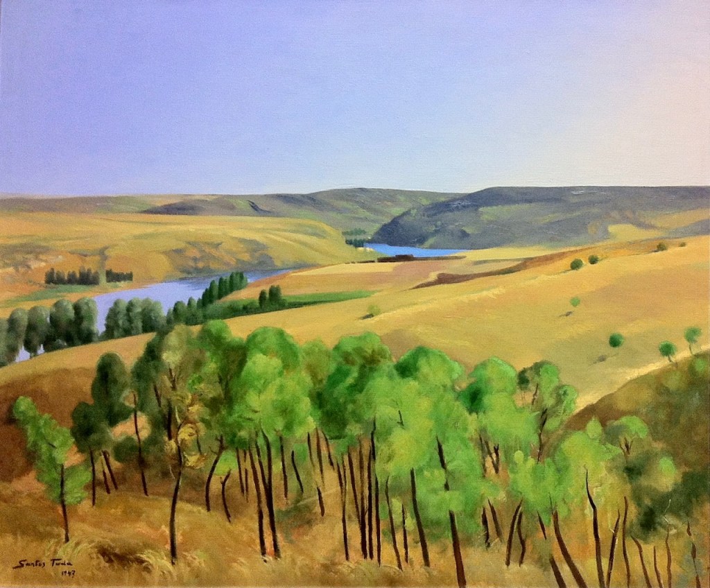 OBRASPaisaje del Duero «Paisaje del Duero» (1947)Óleo sobre tela 1,00 x 1,20 m.Fondo de Arte de la Diputación de ZamoraPedro Santos Tuda (Sobradillo de Palomares, Zamora, 1922) Compártelo: Haz clic para compartir en X (Se abre en una ventana nueva) X Haz clic para compartir en Facebook (Se abre en una ventana nueva) Facebook Me gusta Cargando... Relacionado