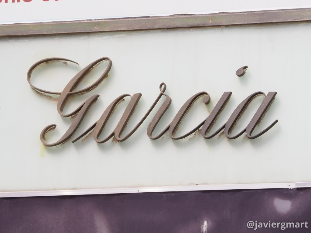 Rótulo en el antiguo comercio textil «García Casado Hnos» en el inmueble ubicado en la Plaza de Sagasta, confluencia de las calles Santa Clara y San Torcuato, Zamora . Fotografías realizadas en mayo de 2022, recién iniciadas las obras de rehabilitación del edificio