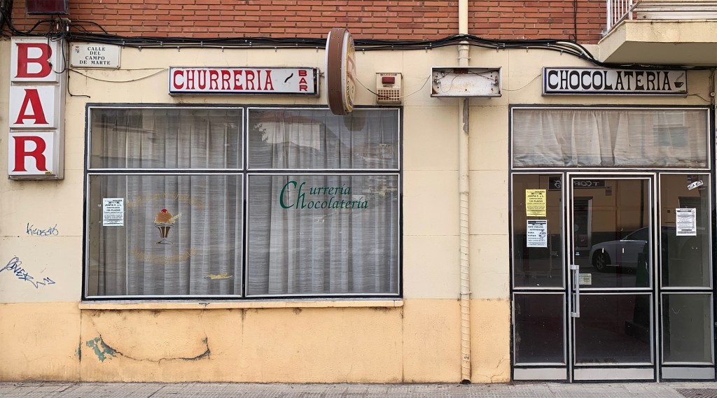 Bar, churrería y chocolatería en el número 7 de la calle Campo de Marte en Zamora. Luminosos elaborados en los talleres de LUMIPLAS (Palencia).