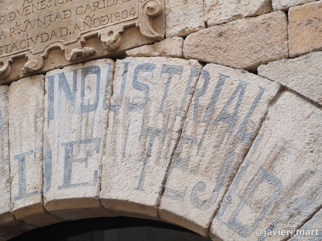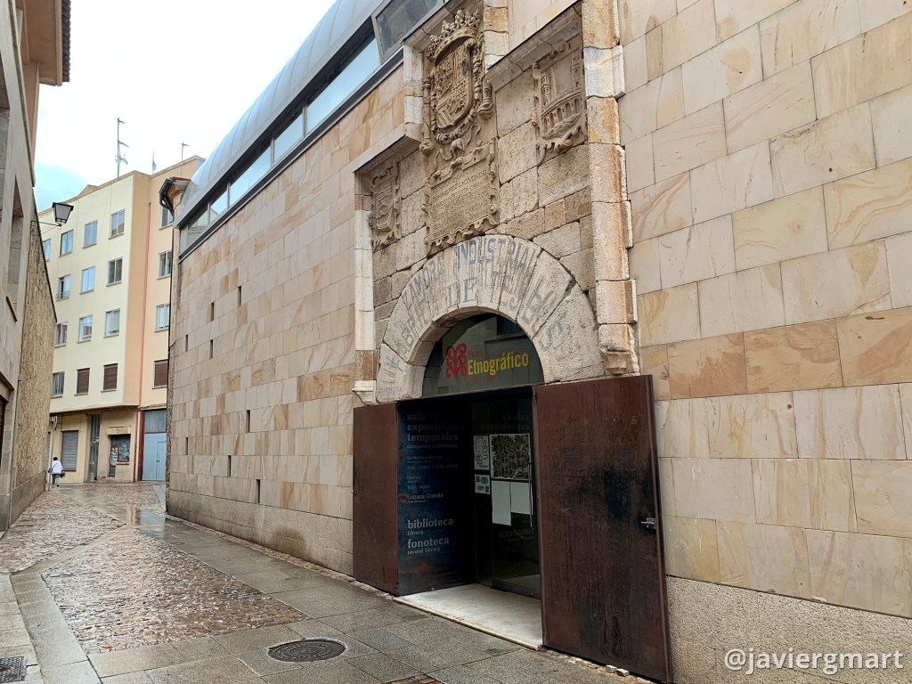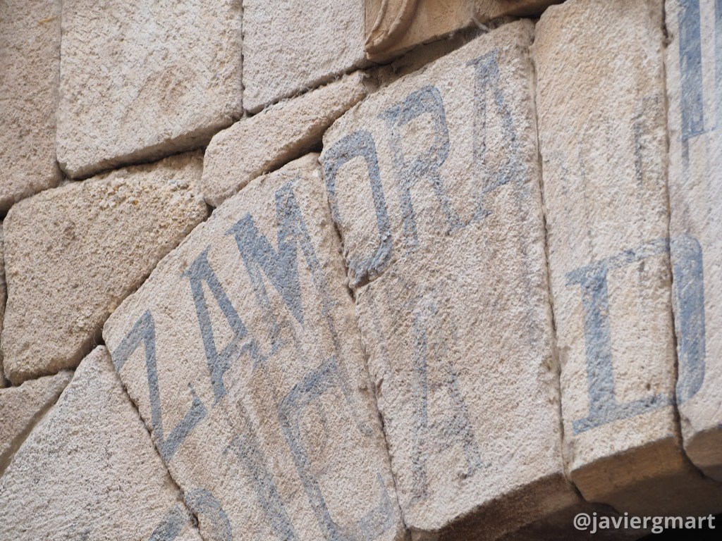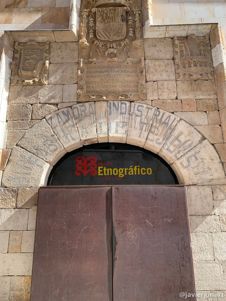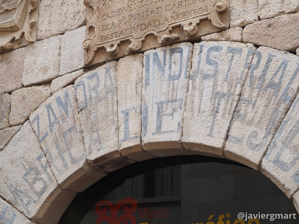 La portada conserva la rotulación de la antigua fábrica textil en las dovelas del arco. Puede leerse «ZAMORA INDUSTRIAL FÁBRICA DE TEJIDOS» y «ENTRADA A LA FCA.» A modo de anécdota: esta rotulación fue denunciada por el escritor Carmelo de Dios Vega en el Diario Imperio en 1955, que la calificó de “chafarrinón antiartístico y antihistórico”.