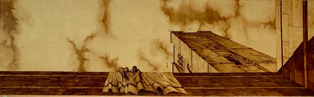 Mural donado por la familia Aguilar al Ayuntamiento de Zamora en el año 2005. Fue concebido para adonar el techo de la sala de juntas del Centro Farmacéutico.