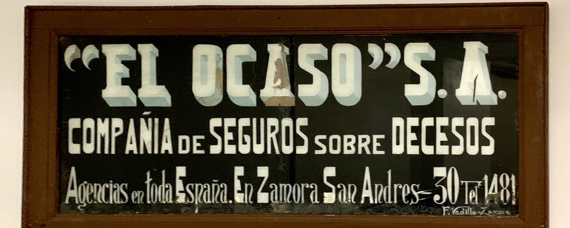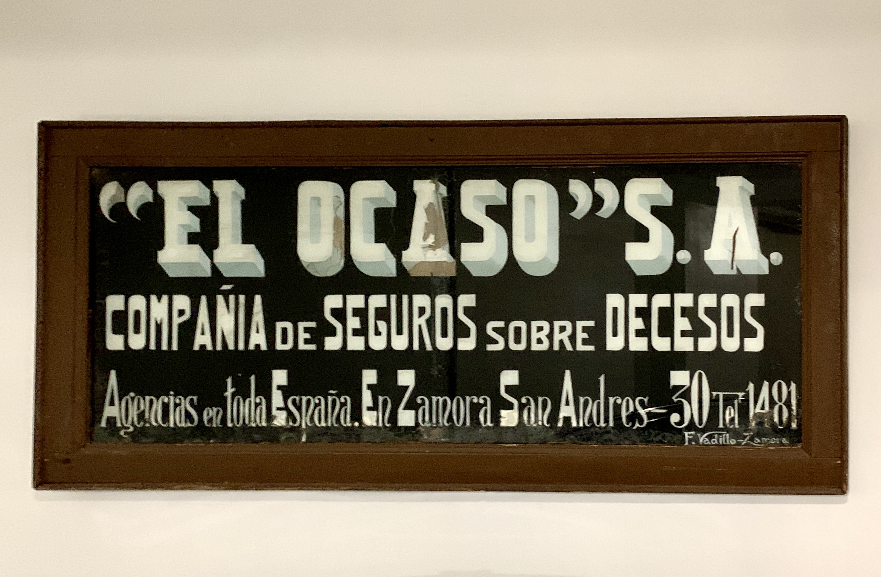 El rótulo se ubicaba en el interior del acceso a la antigua sede de la agencia de la compañía en el palacio de los Marqueses de Cardeñosa, en la calle de San Andrés de Zamora (ver foto inferior). En la actualidad se conserva en el interior de las oficinas que la empresa funeraria tiene en el número 15 de la misma calle.