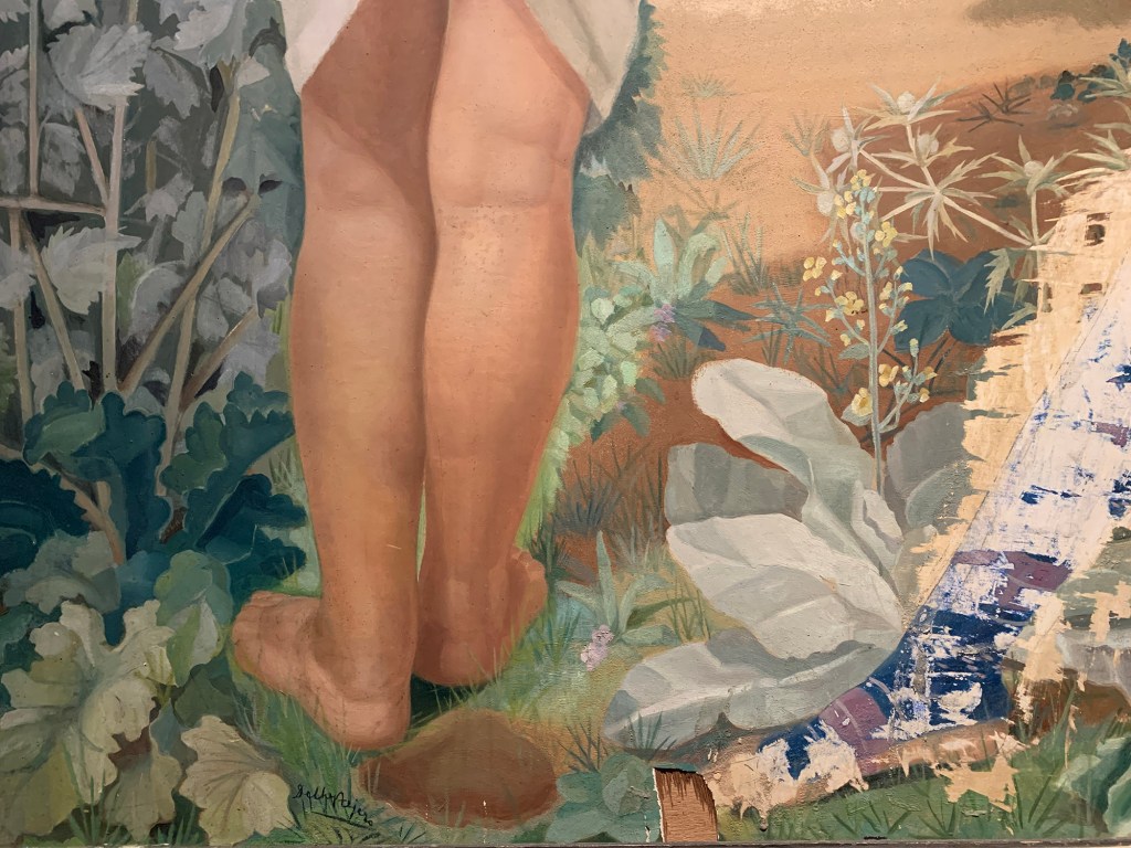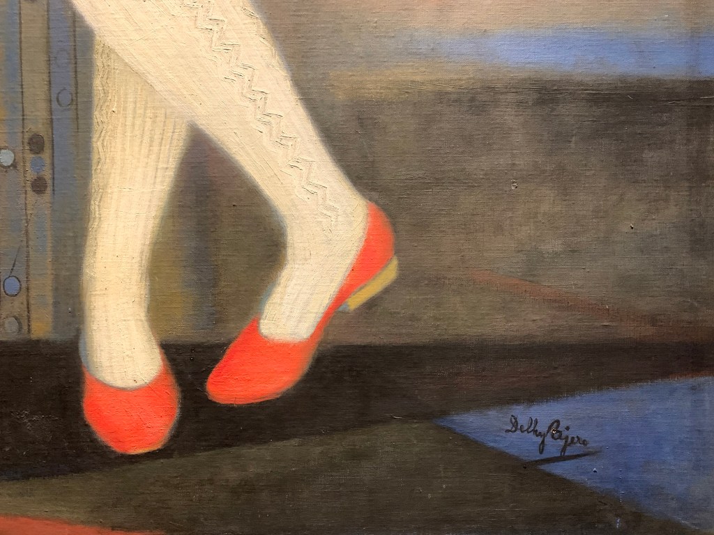 Detalle de «María Dolores» (1954), óleo sobre tabla de madera, 186 x 90 cm. Colección particular. Delhy Tejero