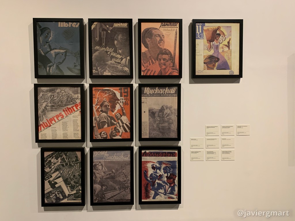 Finalmente, y como curiosidad, entre las publicaciones expuestas para aludir al compromiso social y político de esta generación de mujeres, aparecen un par de números de la revista «Mujeres Libres». Esta publicación fue creada por (entre otras) Mercedes Guillén Comaposada, cuya pareja, el artista zamorano Baltasar Lobo contribuyó a la revista con diferentes ilustraciones.