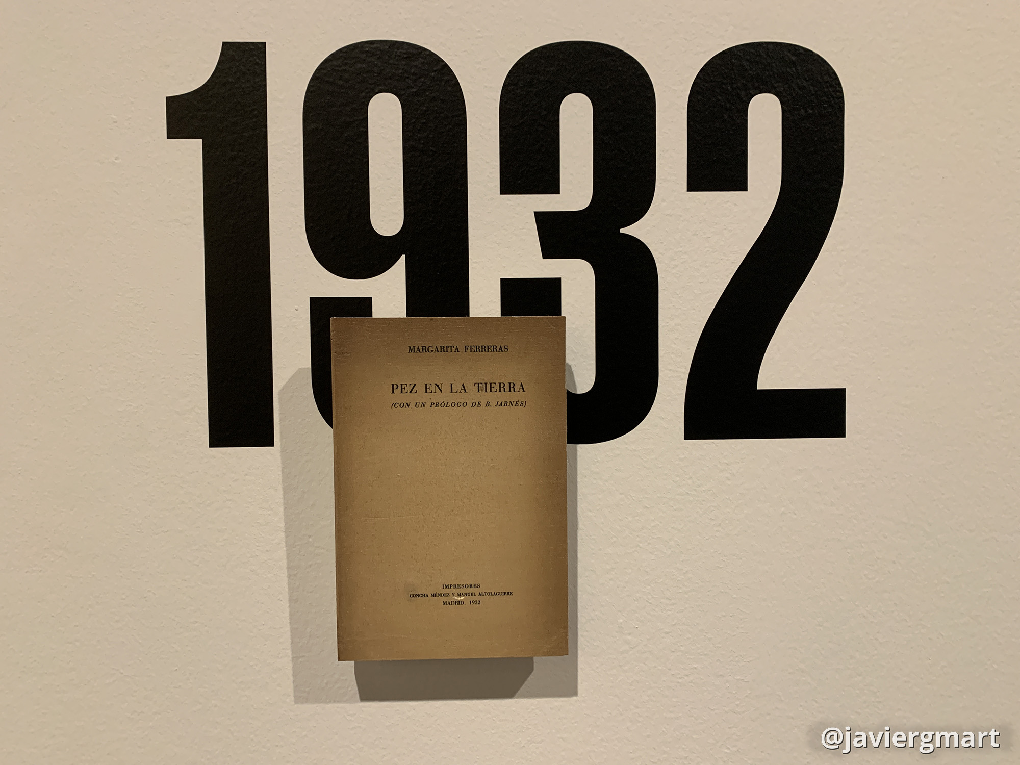 Margarita Ferreras nació en la villa zamorana de Alcañices y tras el fallecimiento de su padre se trasladó a Madrid, donde se insertó en los círculos y tertulias culturales de la época. La exposición dedica un apartado a la poesía de la Generación del 27, enmarcada en las décadas de 1920-30 y cortada con el Golpe de Estado de 1936: los poemarios de ellas «fueron conocidos y reconocidos por sus compañeros de generación, y por críticos, antólogos y editores, aunque más tarde el tiempo les diera la espalda». Una reproducción de la primera edición del poemario «Pez en la tierra» de Margarita Ferreras, impreso en Madrid por Concha Méndez y Manuel Altolaguirre, sirve para representar al año 1932. Se trata de la única obra publicada por la poeta alistana y que ha sido recientemente reeditada por la Editorial Torremozas en una edición preparada por Fran Garcerá.