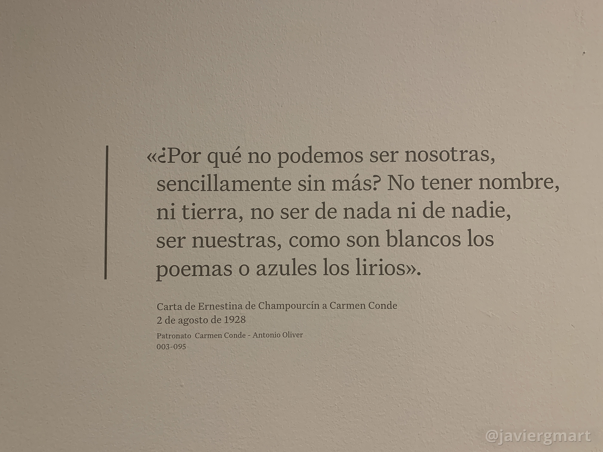 La presentación de la exposición reflexiona: «Ellas, al igual que sus compañeros de generación, fueron parte y testigo de los acontecimientos sociopolíticos que caracterizaron el siglo XX español. Y por consecuencia, ellas y su obra son una fuente testimonial importantísima que nos permite conocer de primera mano los avatares de dicho tiempo, no solo desde la perspectiva artística e intelectual sino también desde la mirada femenina que pocas veces ha sido puesta en valor».