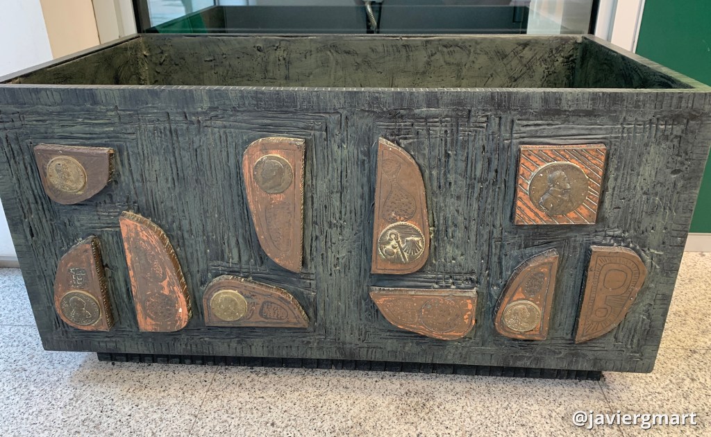 Reja y elementos decorativos en la antigua sede de la Caja de Ahorros Provincial de Zamora en Benavente (actual sucursal de Unicaja) (1982)