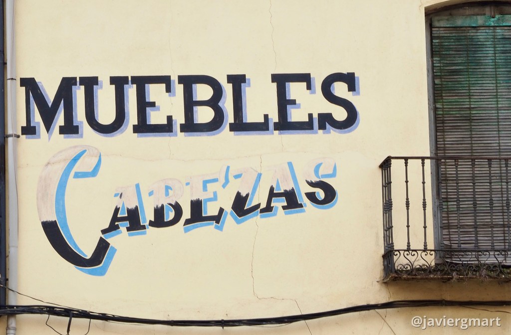 PATRIMONIO GRÁFICOMuebles Cabezas Rótulo sobre fachada «MUEBLES CABEZAS» (establecimiento cerrado)Avenida de la Feria, 9, ZamoraFotografías realizadas en febrero de 2023 Compártelo: Compartir en X (Se abre en una ventana nueva) X Comparte en Facebook (Se abre en una ventana nueva) Facebook Me gusta Cargando... Relacionado