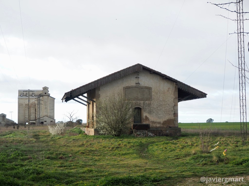 Vista general del edificio de viajeros, muelle de carga y silo