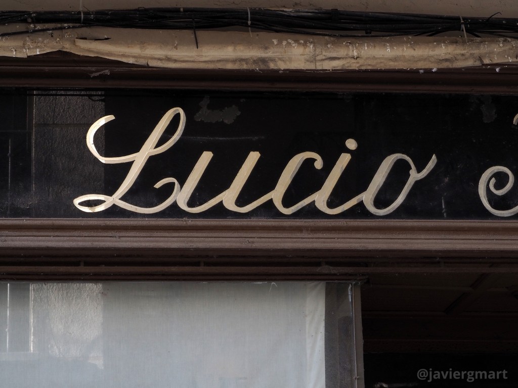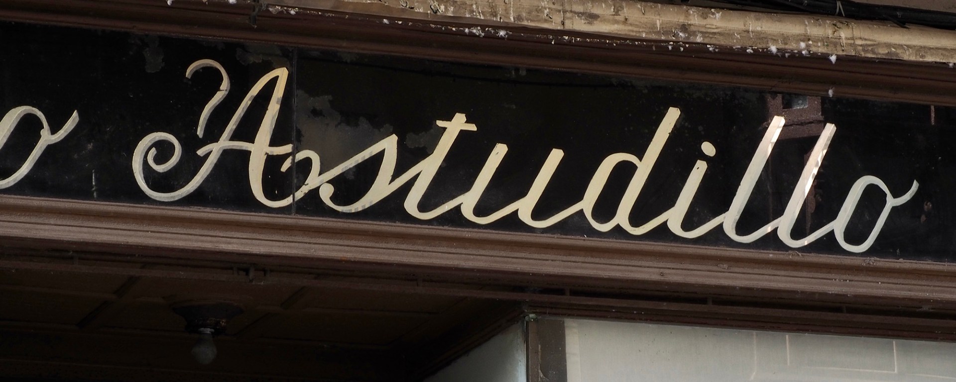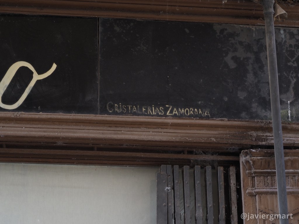 El rótulo es uno de los elementos de patrimonio gráfico más interesantes de la ciudad. Fue elaborado por Cristalerías Zamorana con la técnica tradicional del cristal y el polvo de oro. Fotografías realizadas en enero de 2023.