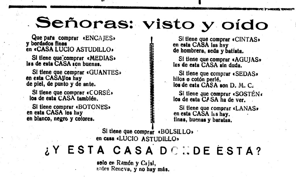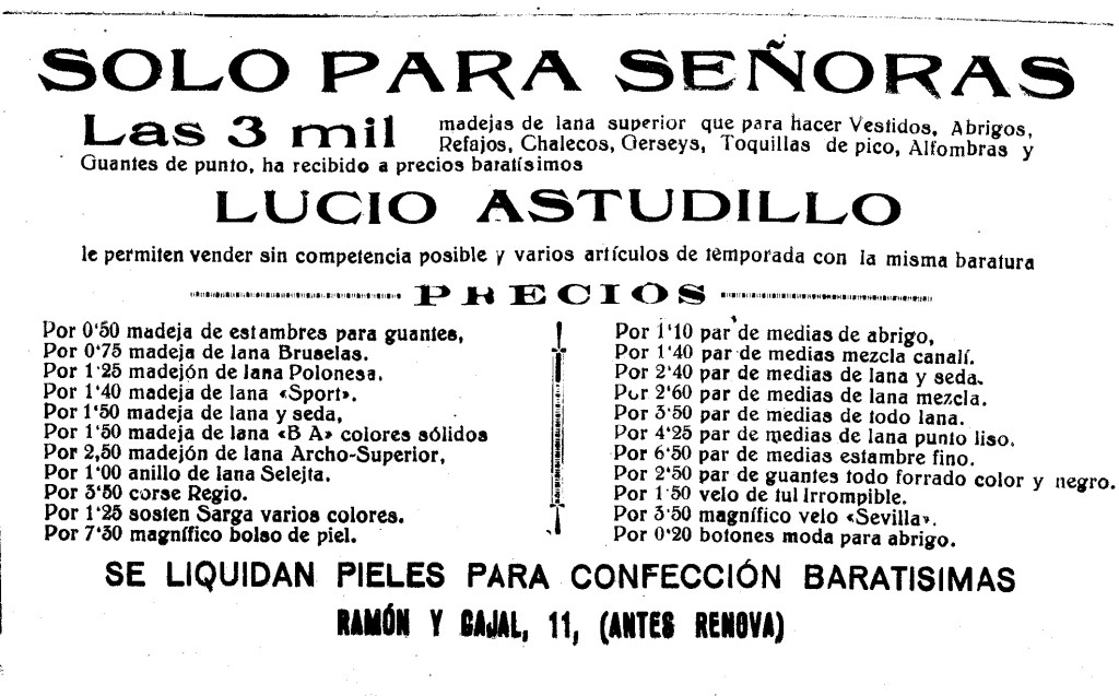Anuncio publicitario de Casa Lucio Astudillo en El Correo de Zamora, 1929