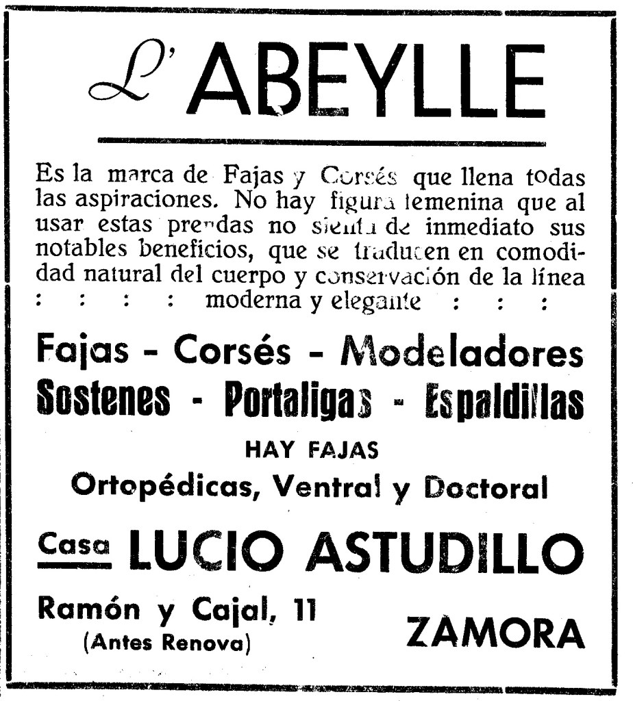 Anuncio publicitario de Casa Lucio Astudillo en El Correo de Zamora, 1935