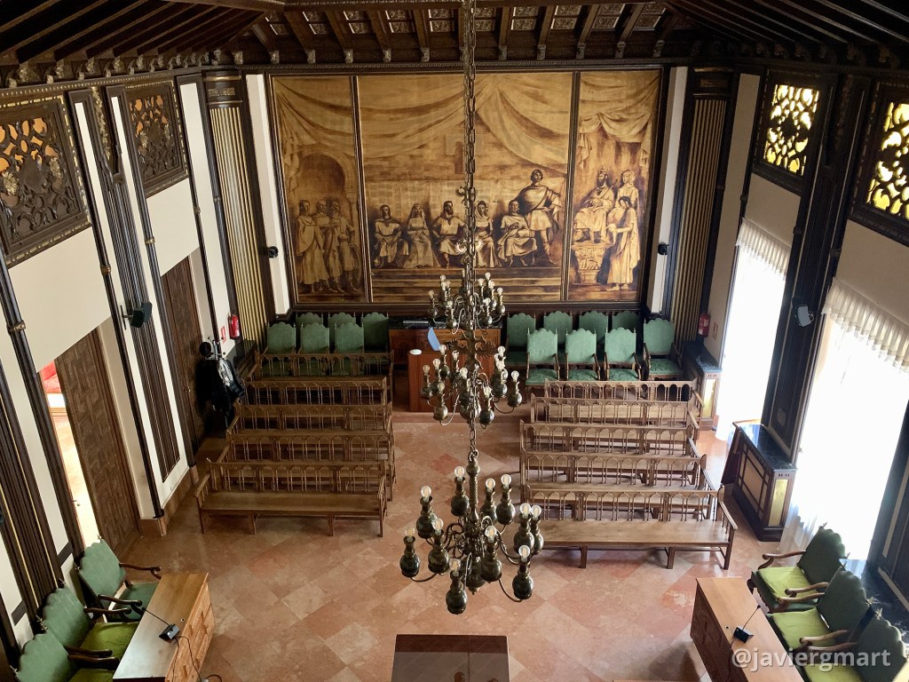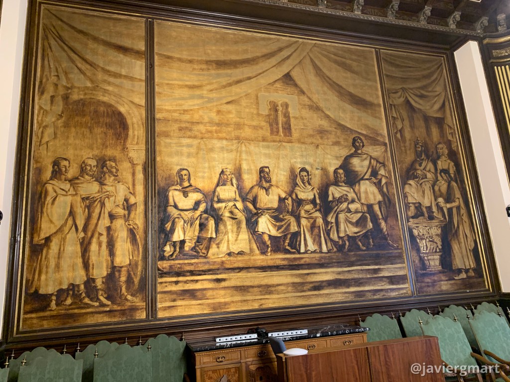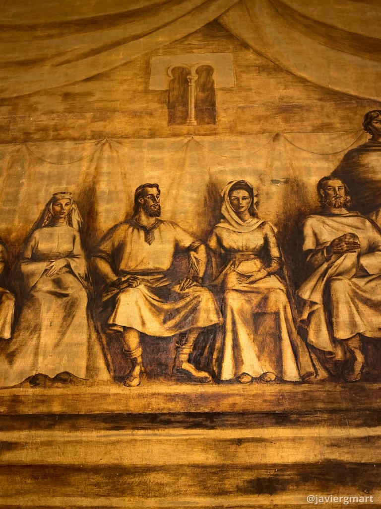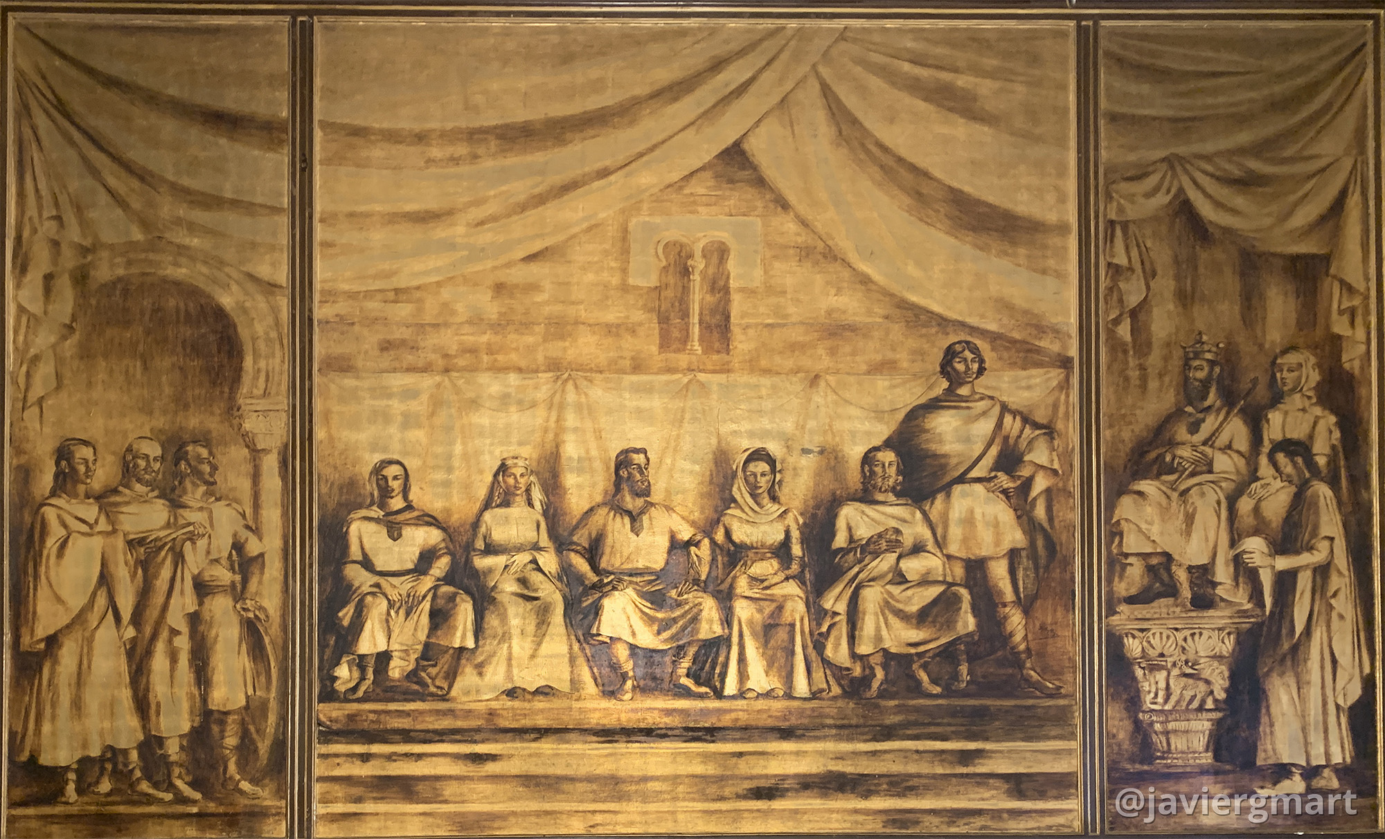 Mural «Amanecer jurídico del municipio zamorano» (1950) 6,2 x 4,25 m. La obra se compone de tres lienzos sobre bastidores. Salón de plenos del Ayuntamiento de Zamora Delhy Tejero (Toro, 1904 – Madrid, 1968)