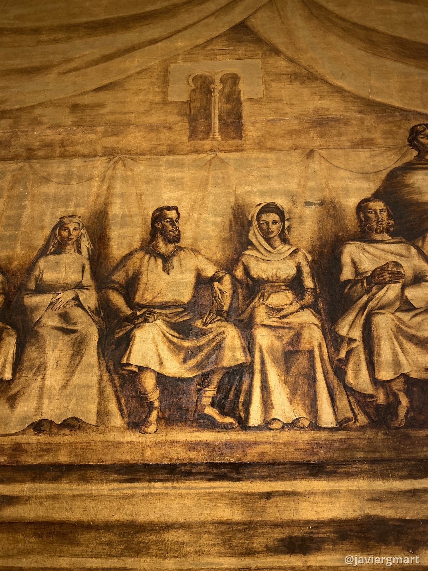 Detalle de la escena central. En la foto vemos, de izquierda a derecha, a Doña Elvira, Don Alfonso, Doña Urraca y Don Sancho. Los otros dos personajes de la escena central (que no aparecen en esta foto) son Don García (izquierda) y el Cid (derecha).