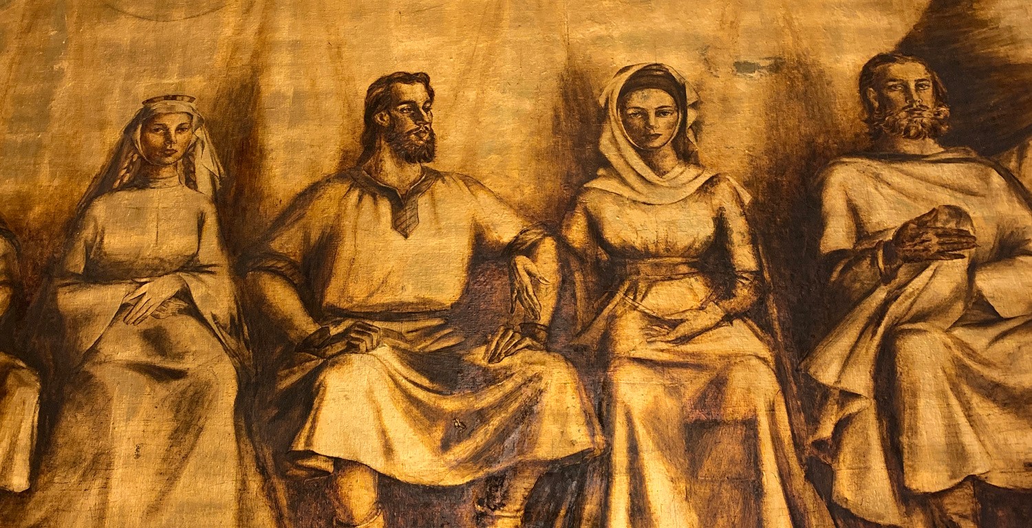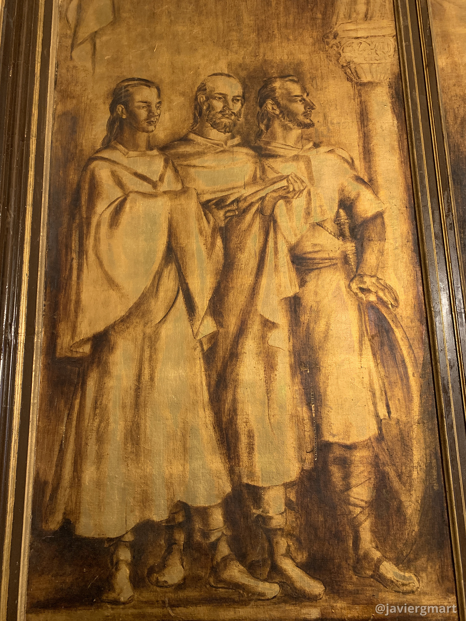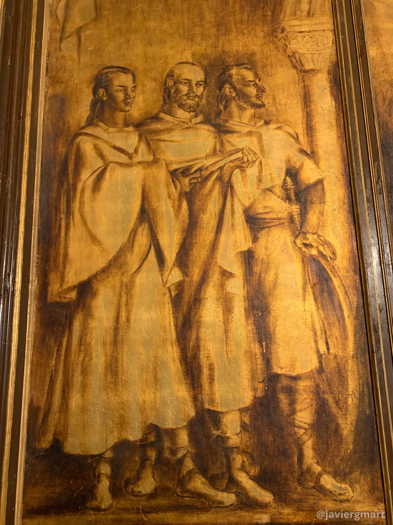 Detalle del lienzo izquierdo. Este lienzo representa al pueblo zamorano «sintetizado en los tres estamentos: un hombre de iglesia, letrado, un hombre de trabajo, mercader, y un hombre de armas».