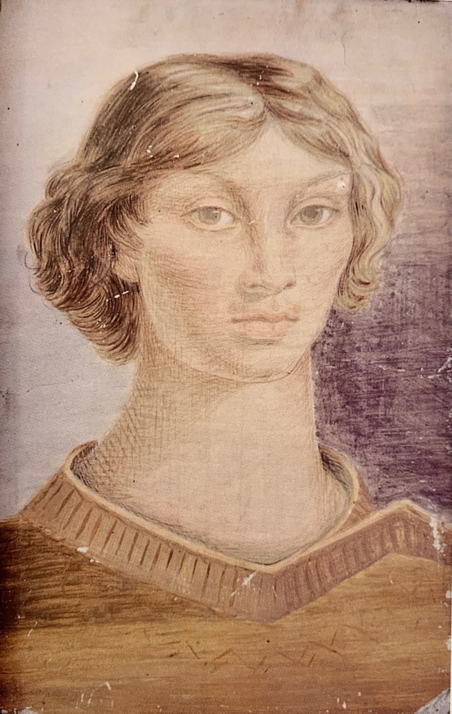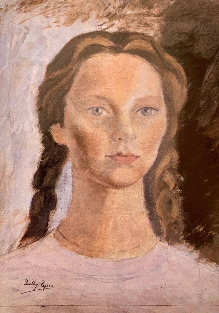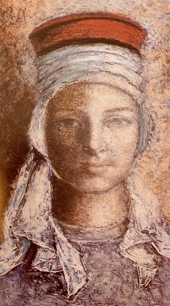 «Doña Urraca» Boceto (1948). Óleo, mortero y corcho. 45 x 27 cm. Catálogo de la exposición «Delhy Tejero: una muchacha y una maleta» (1998).