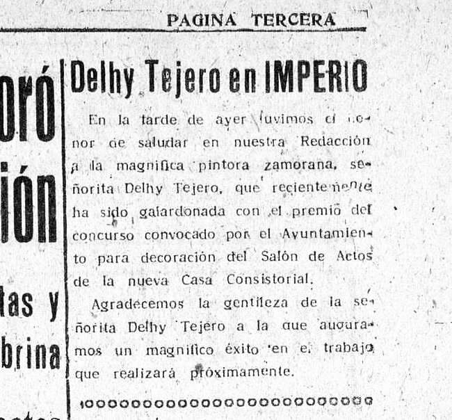 Para saber más sobre Delhy Tejero y su mural: Artículo «Amanecer jurídico del municipio zamorano» de Inés Gutiérrez Carbajal en el Anuario 1994 del IEZ Florián de Ocampo.