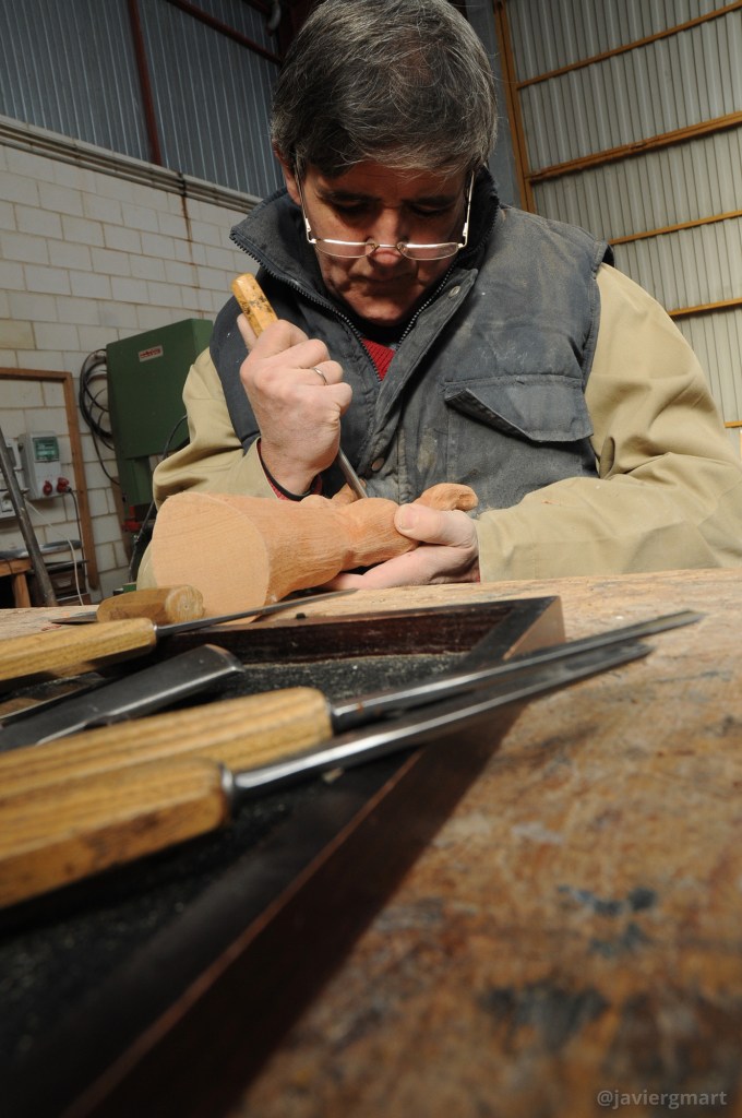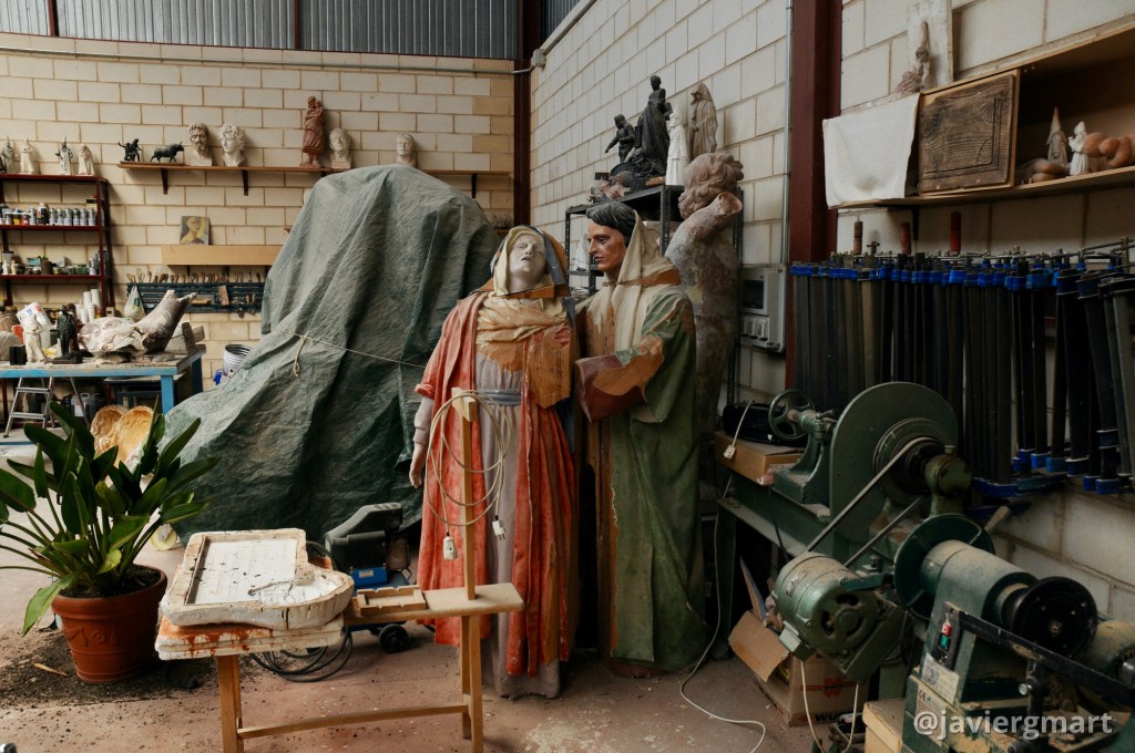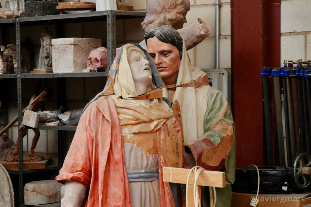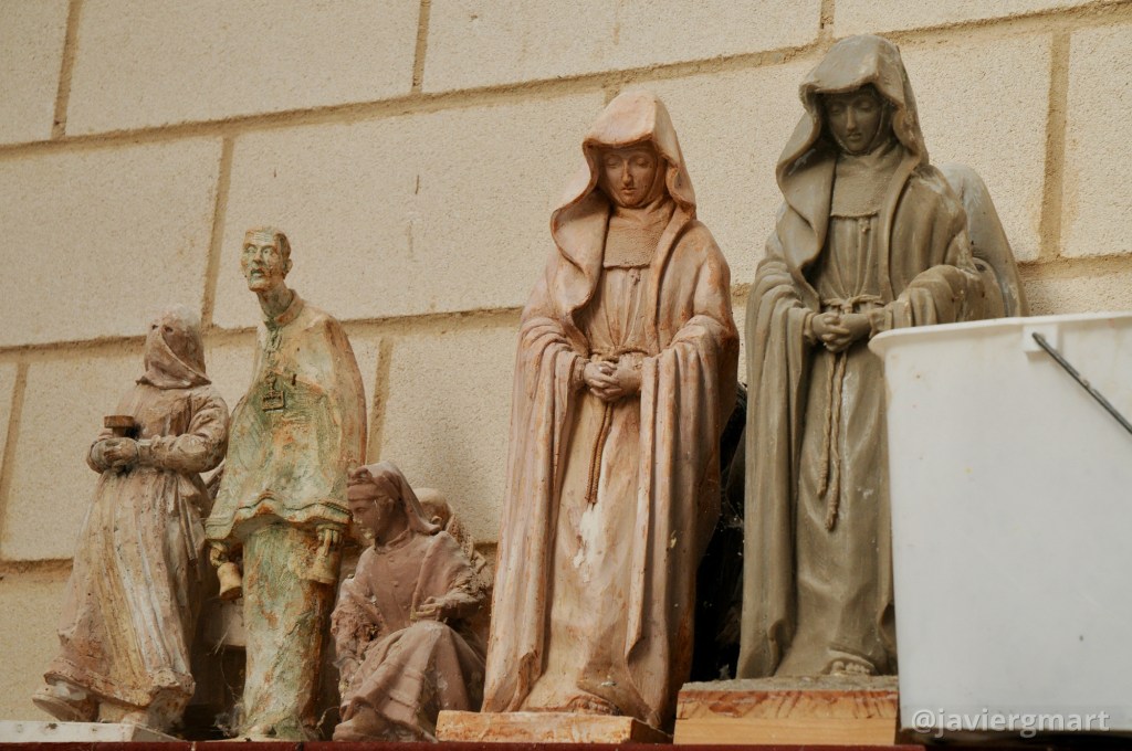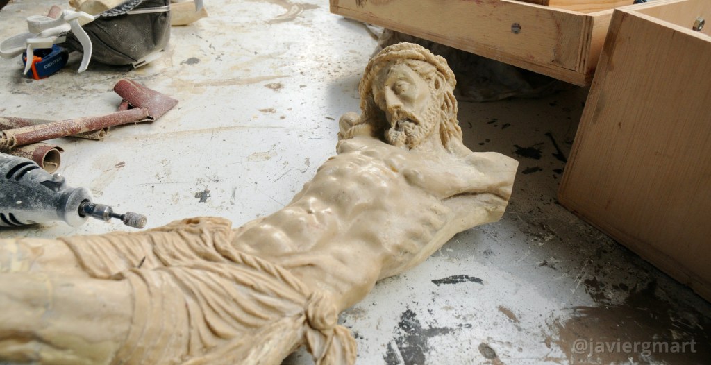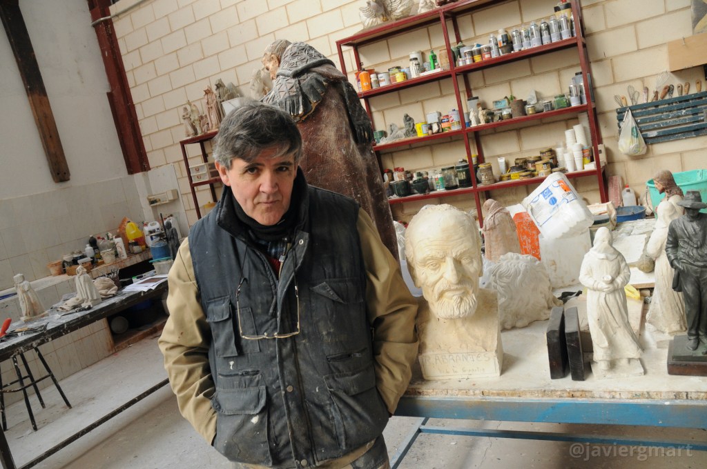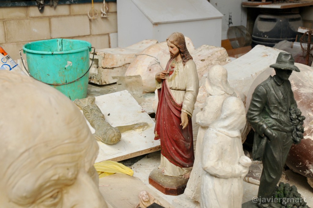 Publico a continuación una colección de fotografías, la mayor parte de ellas inéditas, de una de las visitas a su taller en el polígono de Los Llanos. Era enero de 2015 y Ricardo había sido nombrado pregonero de la Semana Santa de Zamora de aquel año. Aparece el taller como un lugar para buscar e investigar, un laboratorio de ideas con multitud de piezas, muchas de ellas diseccionadas o por acabar, pero también como un lugar para el encuentro y la charla, pues nunca fue celoso a la hora de compartir su proceso creativo con amigos y conocidos.
