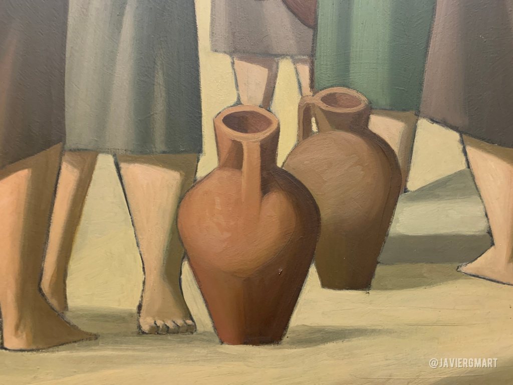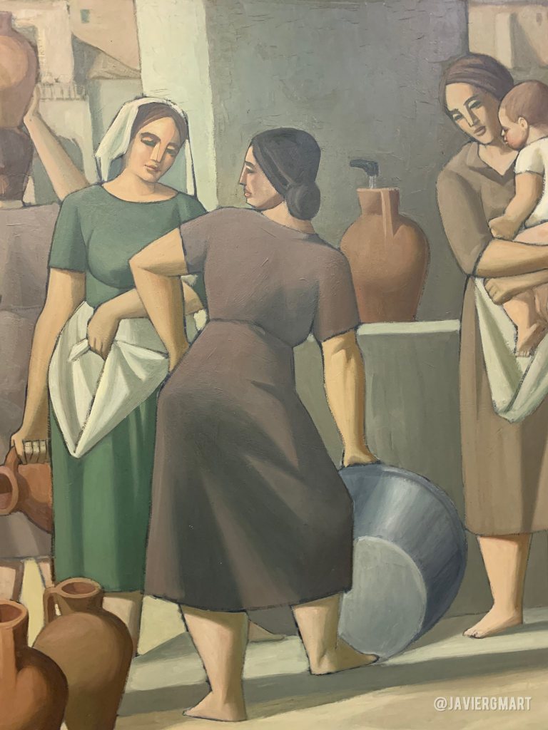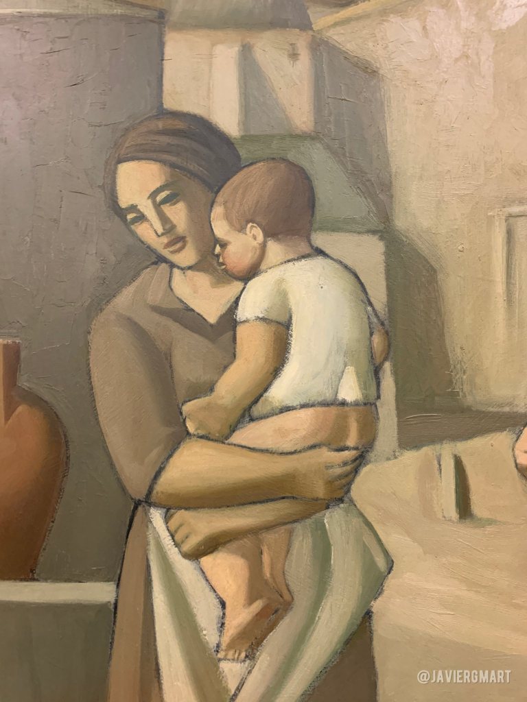 Las figuras, todas ellas femeninas a excepción del niño portado en brazos, aparecen recortadas por una línea oscura, habitual en muchas de las composiciones de Luis Quico. La obra podría circunscribirse a la tendencia cubista a la que se refiere Inés Gutiérrez Carbajal en su trabajo «Pintura del siglo XX en Zamora»: «con alguna pieza de ordenada composición, muy geometrizada, cubistizada, muy conceptual (…) Obras en las que se aprecia un anacronismo en la vestimenta, con modelos de otras épocas, da la impresión de que ha hecho una síntesis de numerosos recuerdos».