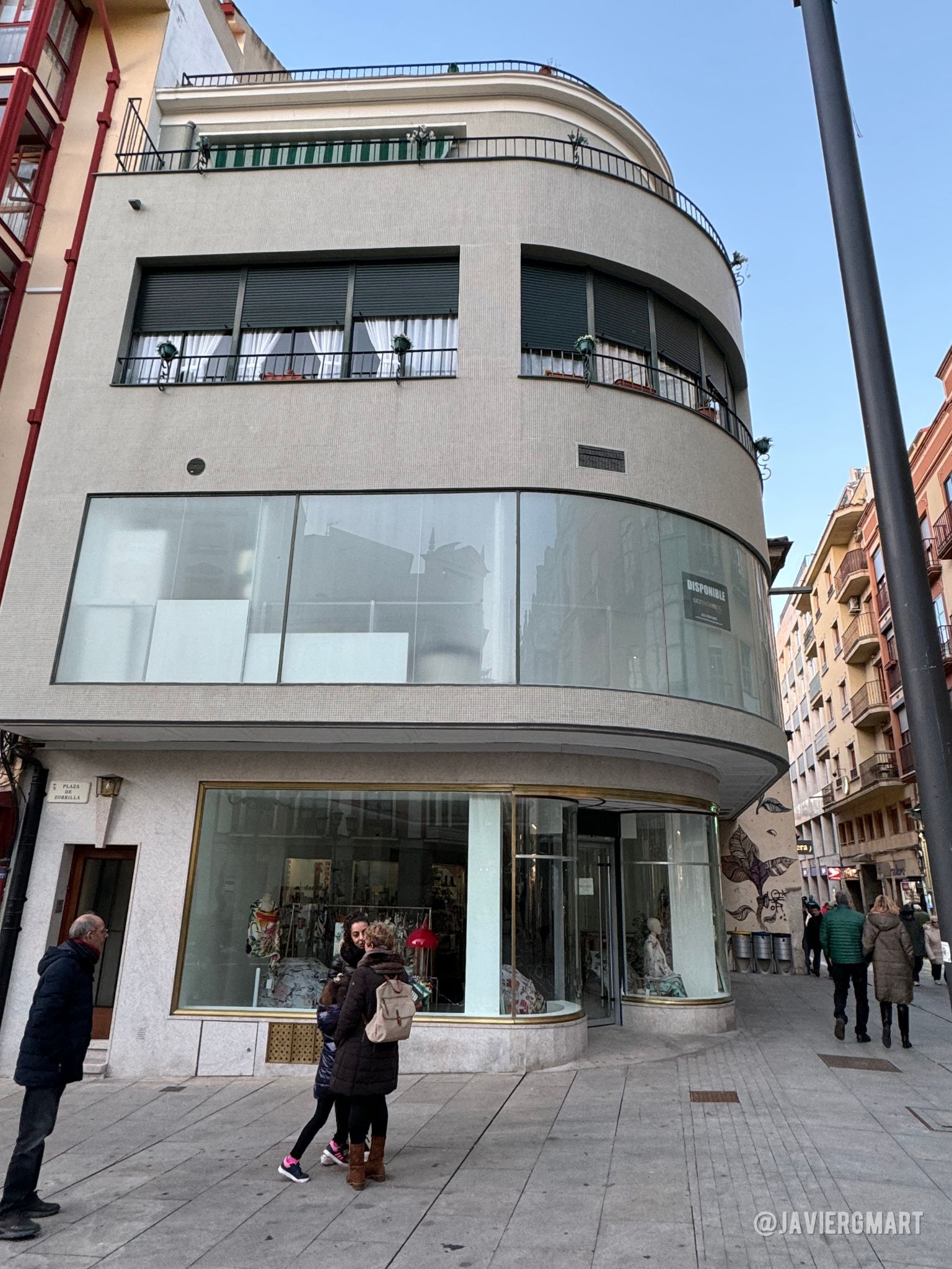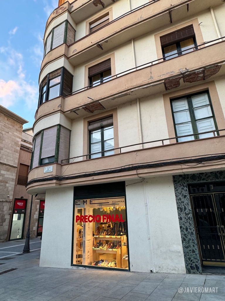 En la fotografía aparece Hilario, dependiente del desaparecido comercio textil «Sederías Sevillano» (esquina de la Plaza Zorrilla con Santa Clara) portando un maniquí con un vestido de comunión. El toldo «ZAPATOS BOLSOS» que aparece de fondo corresponde a otro comercio desaparecido, Calzados Seisdedos, que se ubicaba en la esquina de la plaza con la Calle San Torcuato.