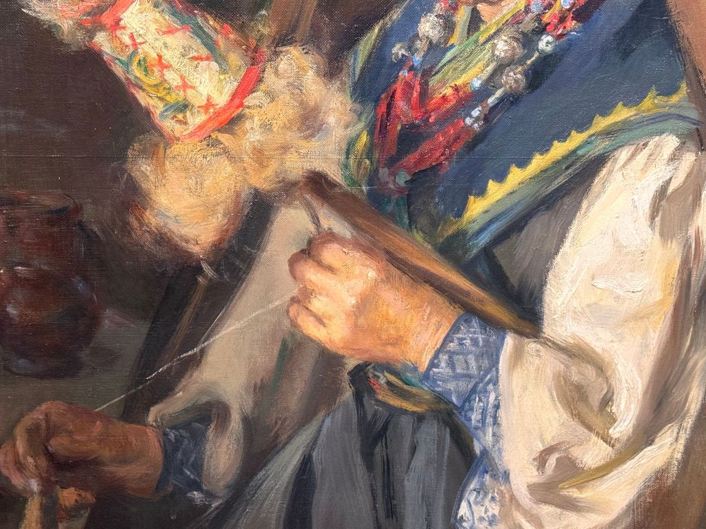 Detalle de «Vieja hilando». Óleo sobre lienzo 81×65 cm. Colección particular en Morales del Vino.