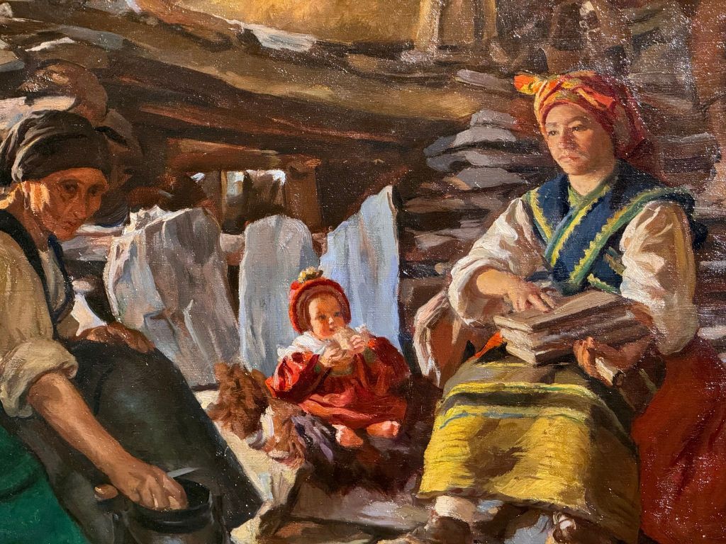 «Vidas laboriosas». Óleo sobre lienzo 52×61 cm. Colección de Jesús Egido. Mandil de picote.