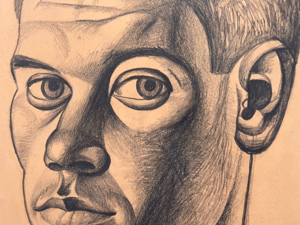 Detalle de «Autorretrato». Grafito sobre papel. 1959.