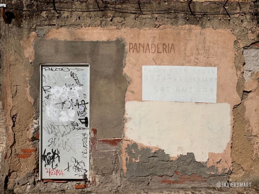 Fachada de antigua panadería «La Milagrosa», fachada de la calle Manteca, Zamora. El rótulo ha sido borrado.