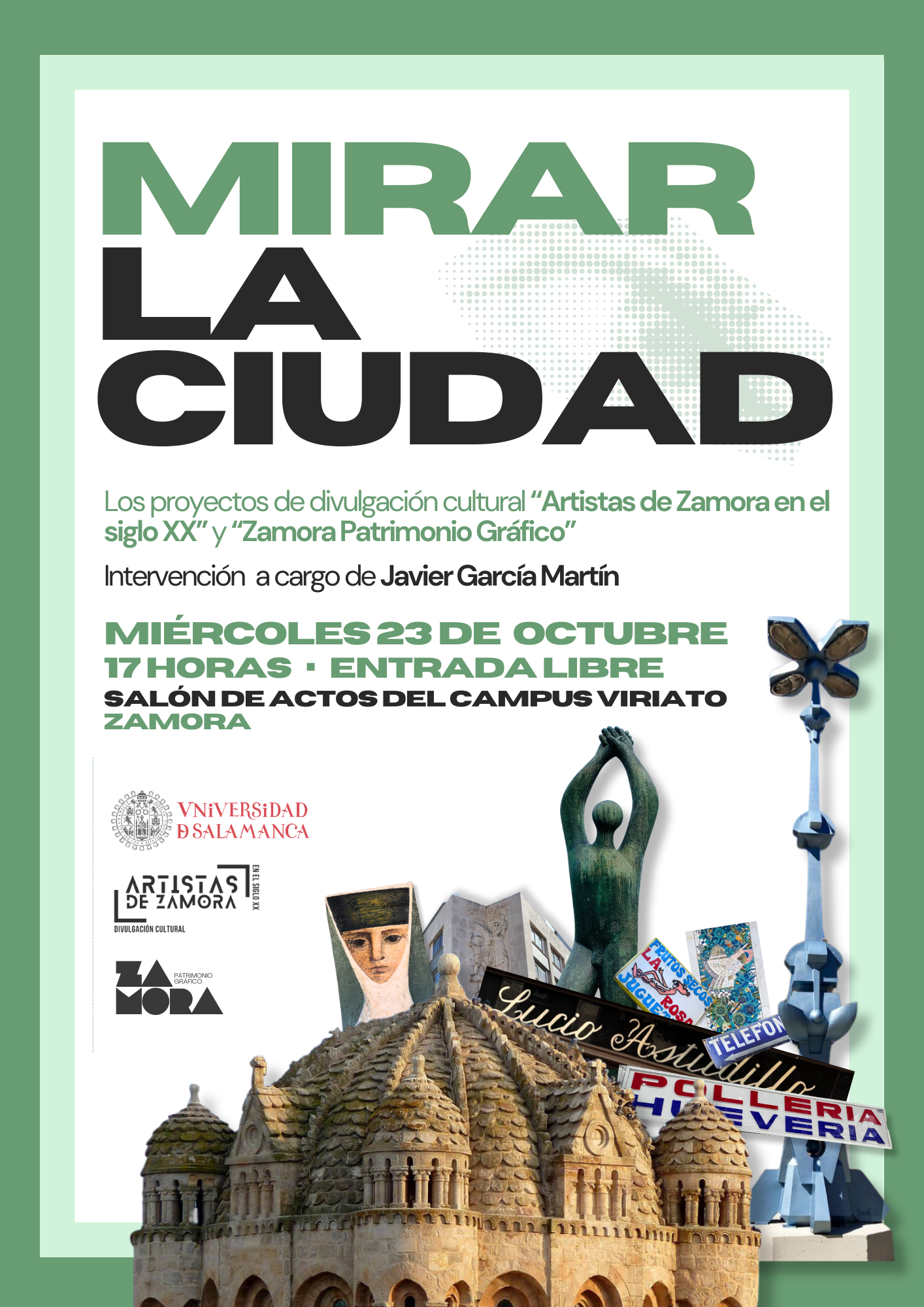 El miércoles, 23 de octubre, a las 17 horas, estaré en el salón de actos del Campus Viriato de Zamora hablando de los proyectos de difusión cultural Artistas de Zamora en el siglo XX y Zamora Patrimonio Gráfico, invitado por el Servicio de Actividades Culturales Universidad de Salamanca. Estáis todos más que invitados. Entrada libre y gratuita.