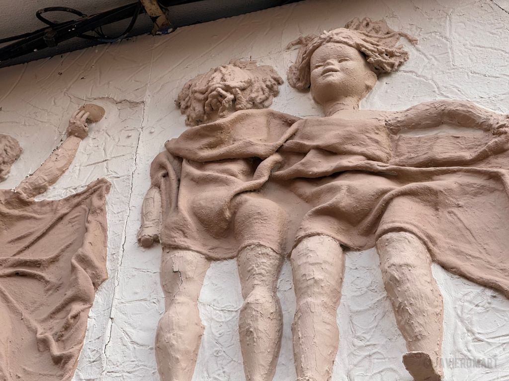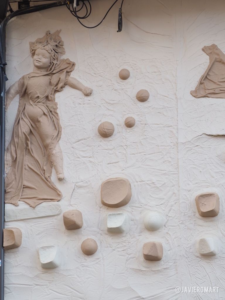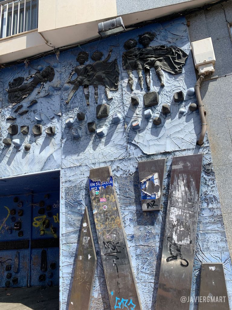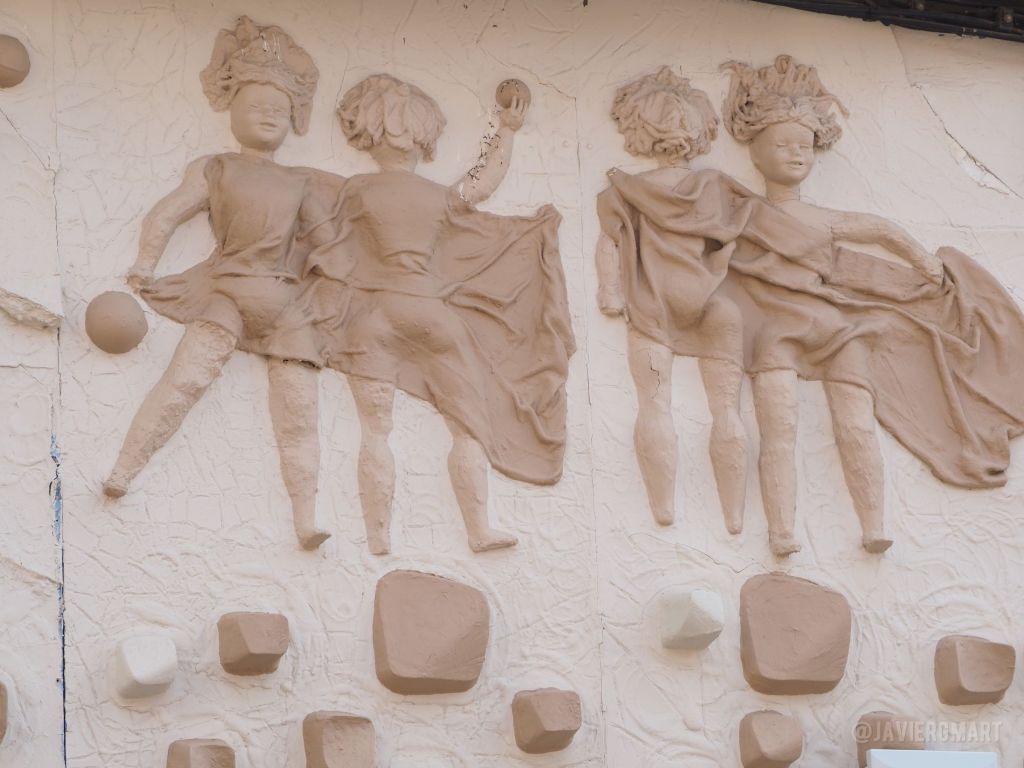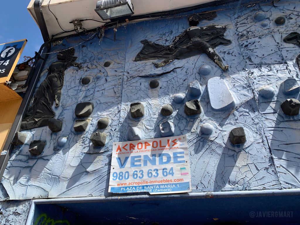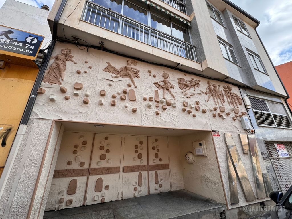 Esta sala de fiesta gozó de gran popularidad en los años 80 y 90. Para decorar su fachada el escultor Coomonte diseñó un divertido universo de figuras humanas en movimiento elaboradas a partir de muñecas recicladas, telas y poliéster., así como una serie de motivos geométricos. Para la reapertura de la sala en 2023 se limpió la fachada, que venía sufriendo actos de vandalismo, perdiendo el característico color azul. Esta obra encaja en la etapa más pop del escultor que a partir de 1975 rescató para sus obras materiales reciclados (alambres, cuerdas, chatarra, juguetes rotos…) creando universos para la diversión pero también para la crítica de un modelo consumista.
