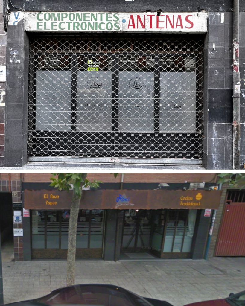 La ciudad está hecha de capas. La retirada de los rótulos del Restaurante Ribel-Casa Elías (Avenida Víctor Gallego, 25, Zamora) ha sacado a la luz la rotulación artesanal de un establecimiento anterior. El restaurante cerró sus puertas en enero de 2024 tras tres décadas de servicio. El local, actualmente en alquiler, muestra ahora parte de la rotulación que está oculta tras los azulejos que cubren la fachada. En el dintel puede leerse «COMPONENTES ELECTRONICOS. ANTENAS», en el lateral izquierdo han quedado visibles las letras «VO» y en el derecho parte de un logotipo.