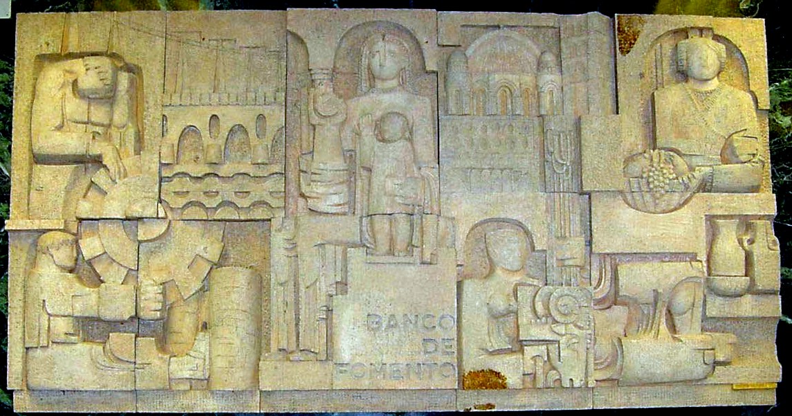 La sede del Banco de Fomento en Zamora estuvo ubicada en los bajos del bloque de viviendas levantado en los números 7 y 9 de la calle Santa Clara tras el derribo de la antigua sede de la entidad (adosada a la iglesia de Santiago del Burgo). El mural escultórico recoge motivos de la cultura, el patrimonio y la economía de la provincia de Zamora. Así, en la parte izquierda aparecen dos hombres con una rueda dentada como símbolo de la industria, un tendido eléctrico y una vista del Puente de Piedra de Zamora. En la parte central, una mujer con un niño, el cimborrio de la Catedral y referencias a la agricultura y la ganadería. La parte izquierda se completa con una mujer ataviada con el vestido de viuda rica de Toro sosteniendo un cesto con uvas y una referencia a la alfarería y la arqueología.