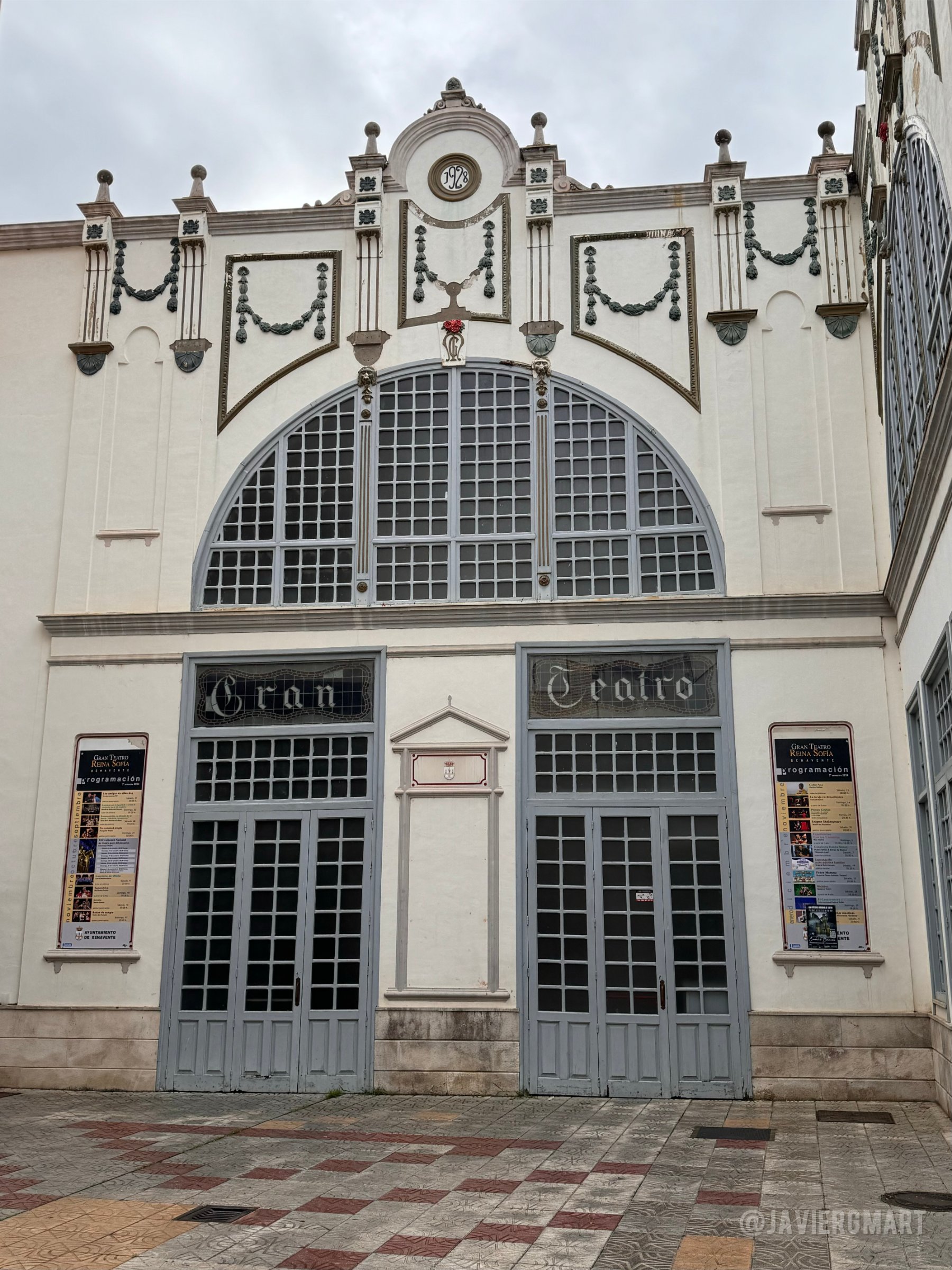 Gran Teatro. Actual Teatro Reina Sofía, Benavente (Zamora). Fue proyectado por el arquitecto Antonio García Sánchez-Blanco en 1928. Fue adquirido por el Ayuntamiento de Benavente en 1984 y reinaugurado por la Reina Sofía en 1991 tras una reforma del arquitecto Francisco Somoza. En la fachada aparece el rótulo «Gran Teatro» en tipografía de estilo gótico en dos vidrieras de cristal emplomado. En la decoración del remate de la cornisa se lee, en original disposición circular, el año de construcción.