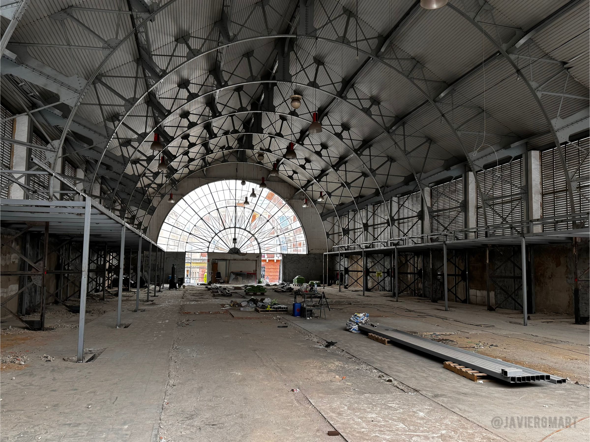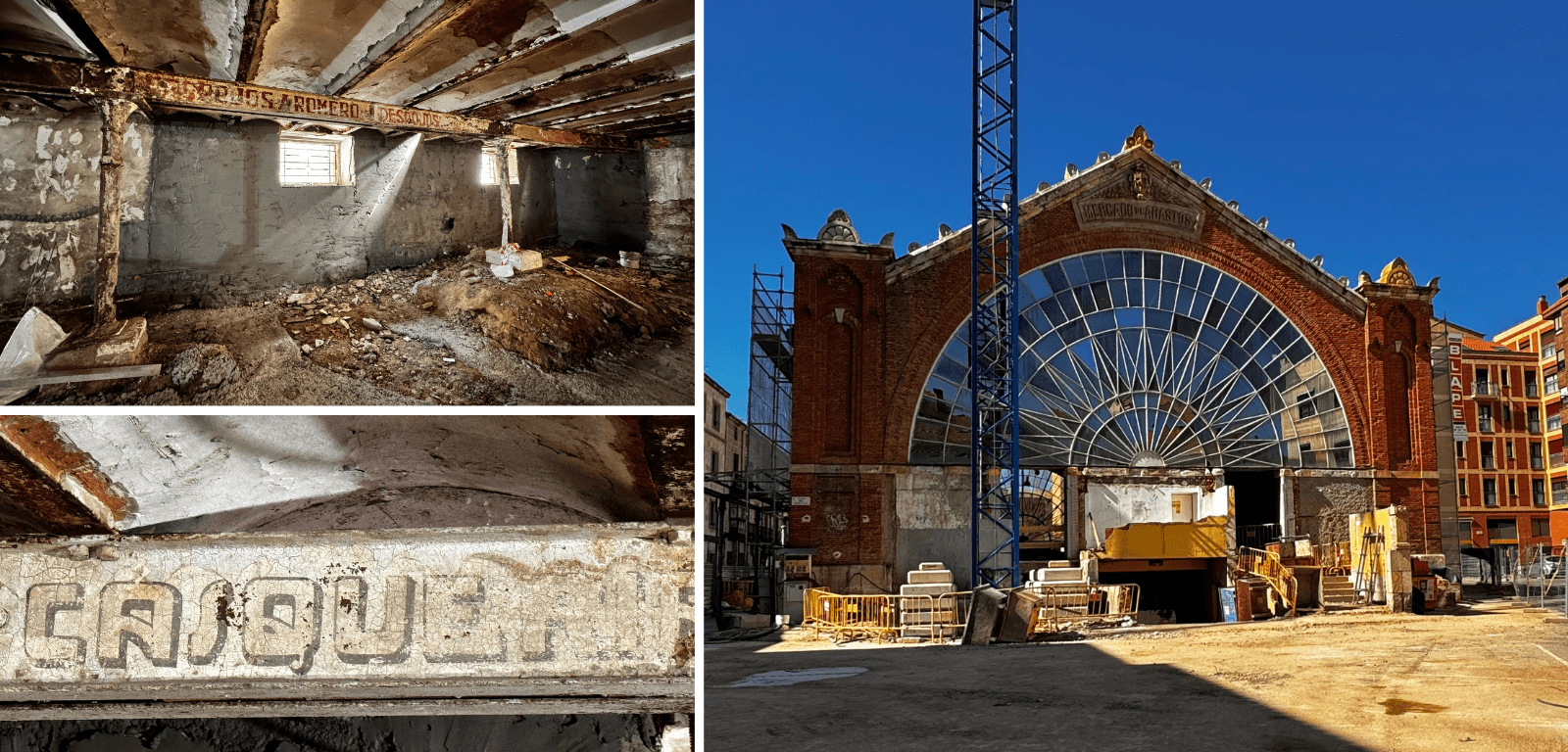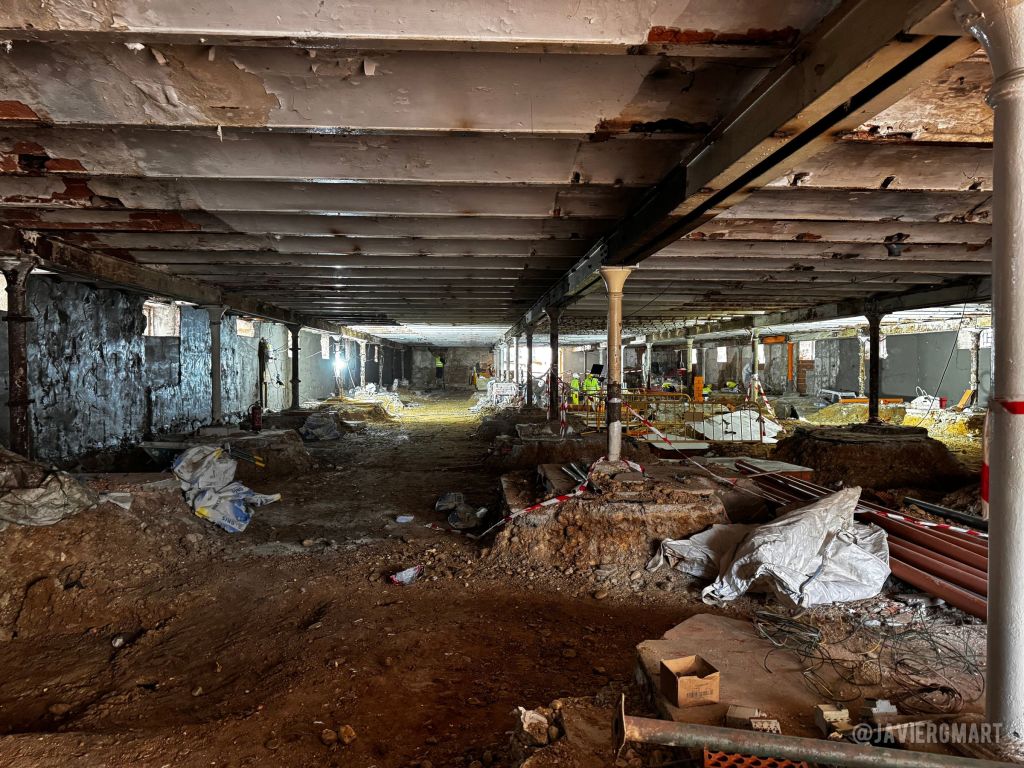 Justo hace un año el Mercado de Abastos de Zamora cerraba sus puertas para preparar el traslado a la instalación provisional actual en el Parque de La Marina y comenzar con las obras de remodelación del edificio histórico proyectado por el arquitecto benaventano Segundo Viloria en 1904. Basta un paseo por la zona para comprobar que las obras avanzan a buen ritmo y que los restos arqueológicos de la antigua iglesia de San Salvador de la Vid -en cuyo solar se levantó el Mercado- se encuentran donde se esperaba. La impresionante armadura original de hierro ha sido liberada de añadidos en las dos plantas sacando a la luz un puñado de rótulos comerciales antiguos en la planta inferior.