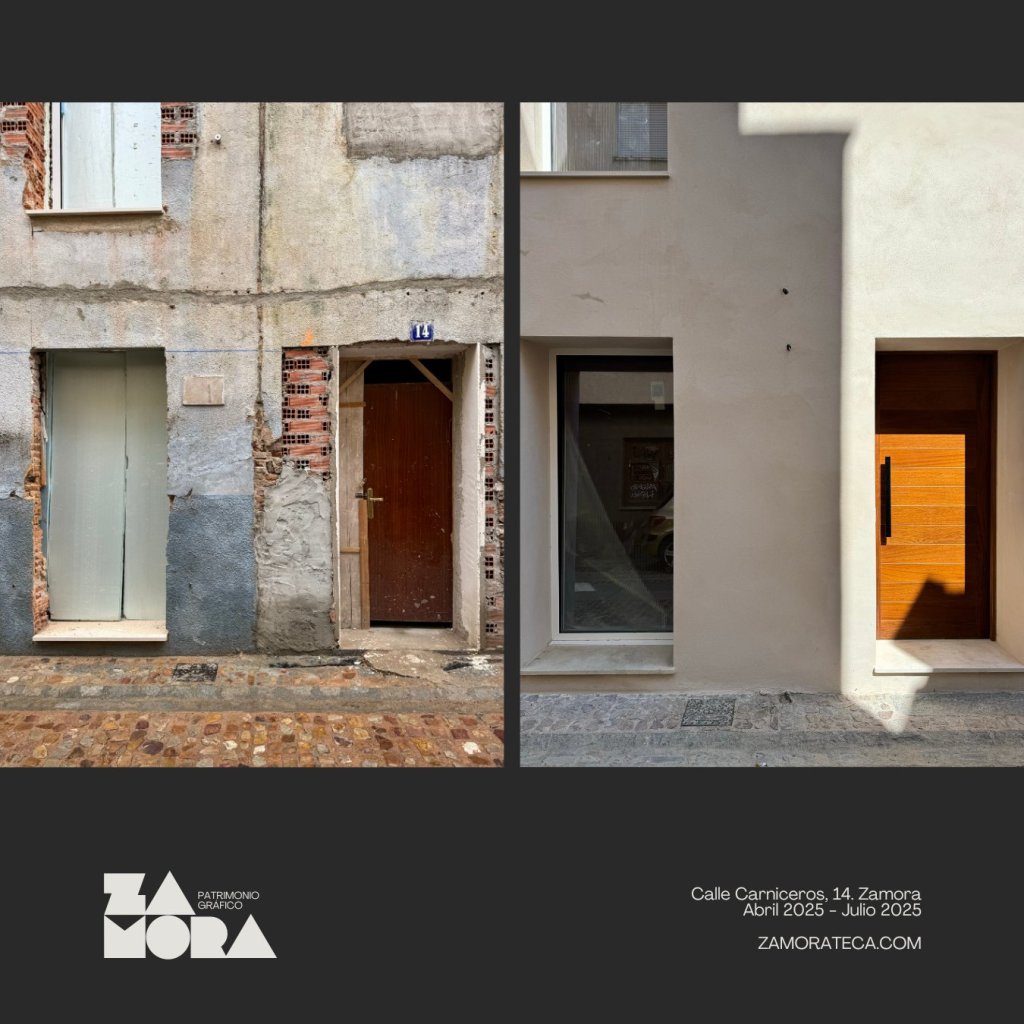Hoy documentamos la desaparición de dos elementos singulares ubicados en la fachada del número 14 de la calle Carniceros, en Zamora.