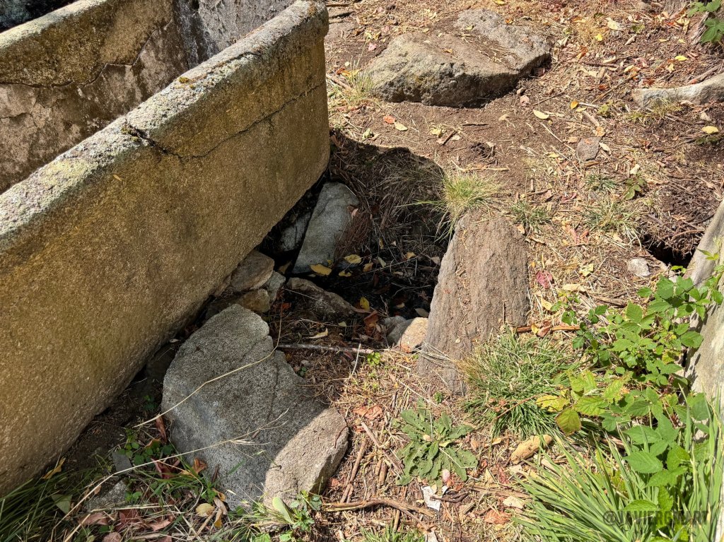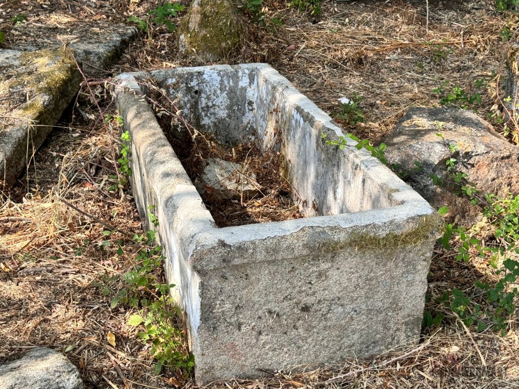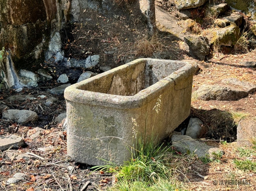 Cada una de estas pilas de baño formaba parte, en su época de esplendor, de un sencillo gabinete de madera: espacios privados donde los visitantes se sumergían en las aguas sulfurosas del manantial. La reciente limpieza y desbroce permiten recuperar una estampa del pasado que no se veía desde hacía décadas. Las cuatro bañeras se encuentran junto al depósito adosado a la gran roca de la que brota el manantial y que aún se mantiene en pie, si bien el caño de salida parece bloqueado.