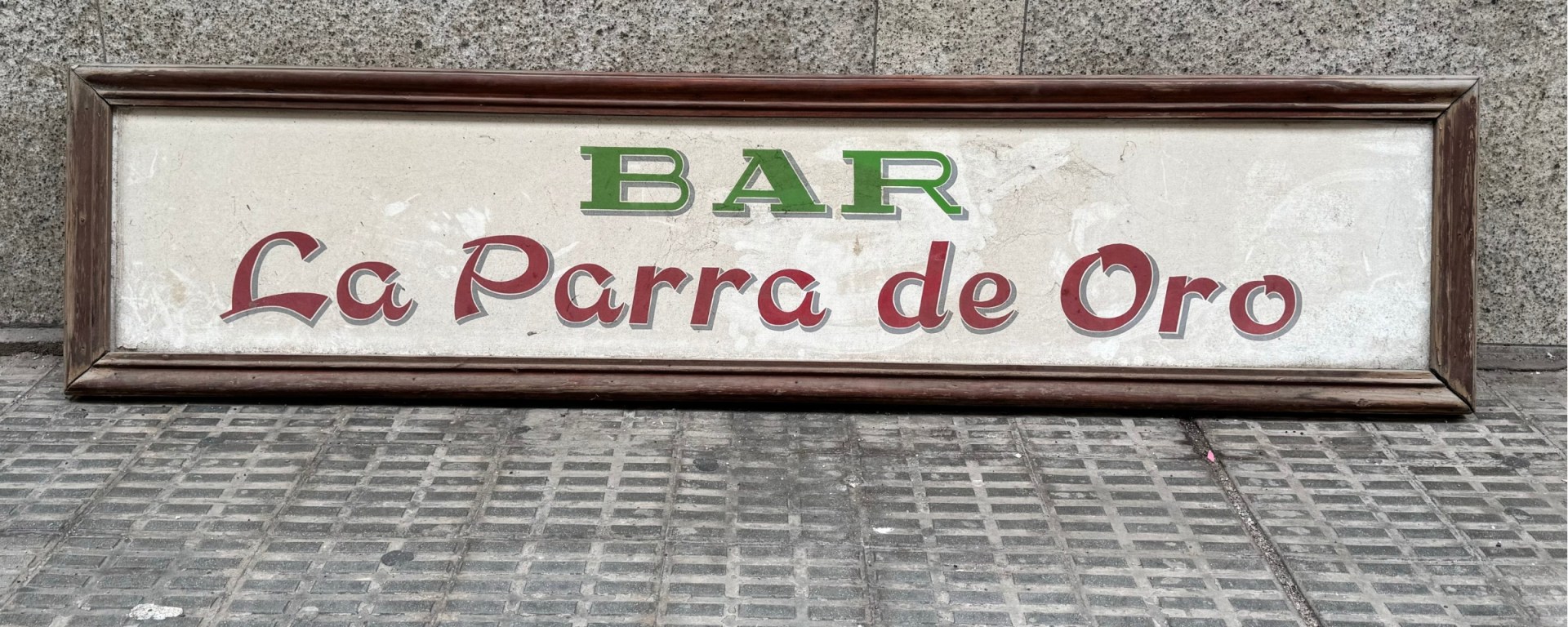 Rótulo del desaparecido Bar-cantina «La Parra de Oro»