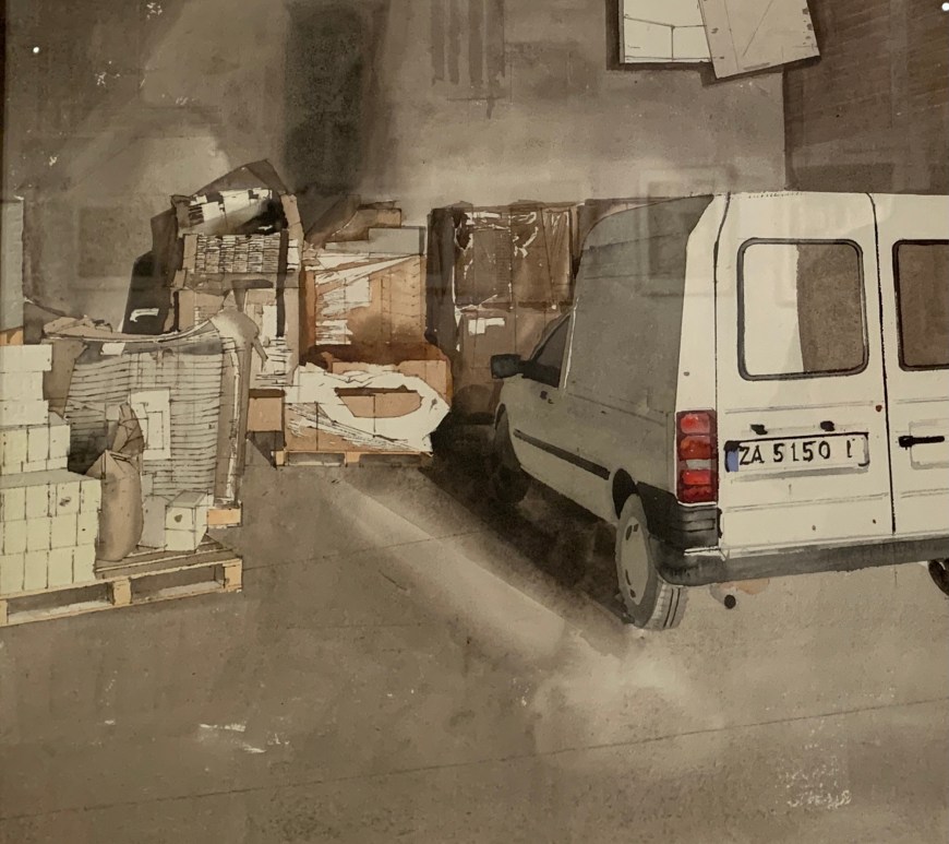 «Sin título» (¿1977?)180 x 120 cm.Colección de la Subdelegación del Gobierno en Zamora (Sala de videoconferencias).Luis Quico (1931-2008) Desconocemos si la escena está ubicada en un paisaje inventado o, si por el contrario, está ambientada en una localidad existente. Igualmente ignoramos cómo llegó esta obra a la Subdelegación del Gobierno en Zamora, es probable que formase parte de la exposición celebrada en noviembre de 1977 en la … Continúa leyendo Sin título