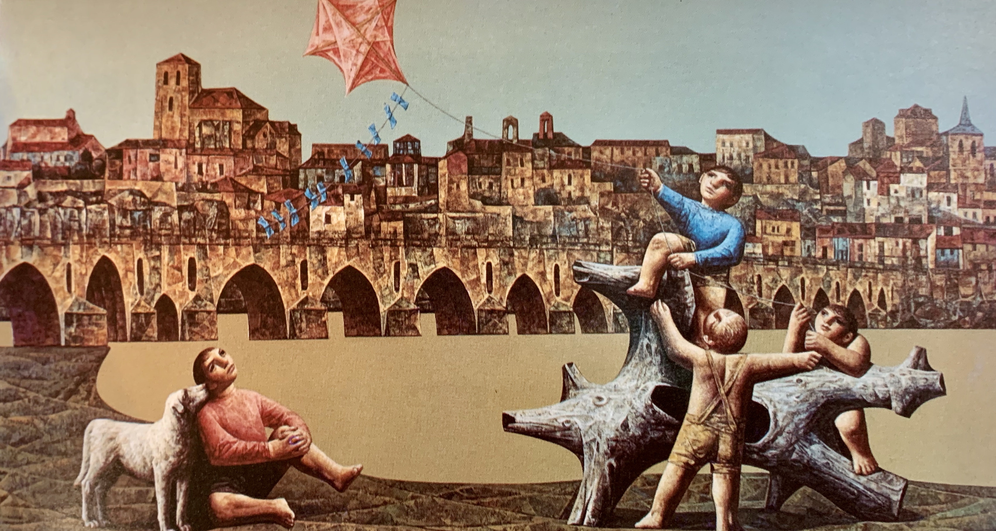 ninos-con-cometa-y-ciudad-antonio-pedrero-zamora