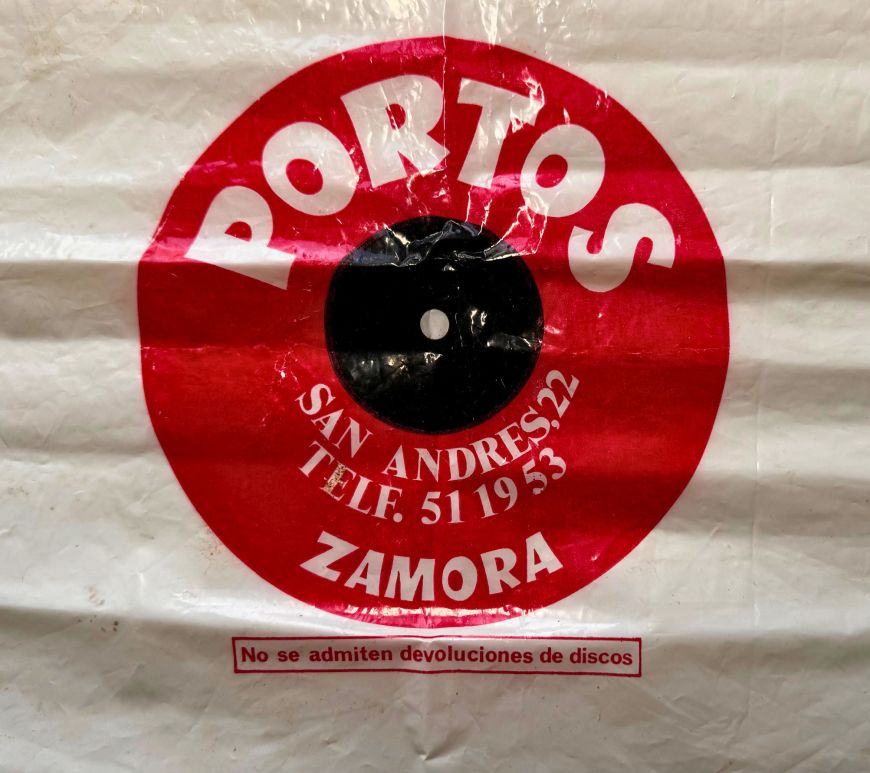 Bolsa de Discos Portos (establecimiento cerrado). Calle San Andrés, 22. Zamora.Pieza cedida por Mónica Panero Ramos. Continúa leyendo Discos Portos