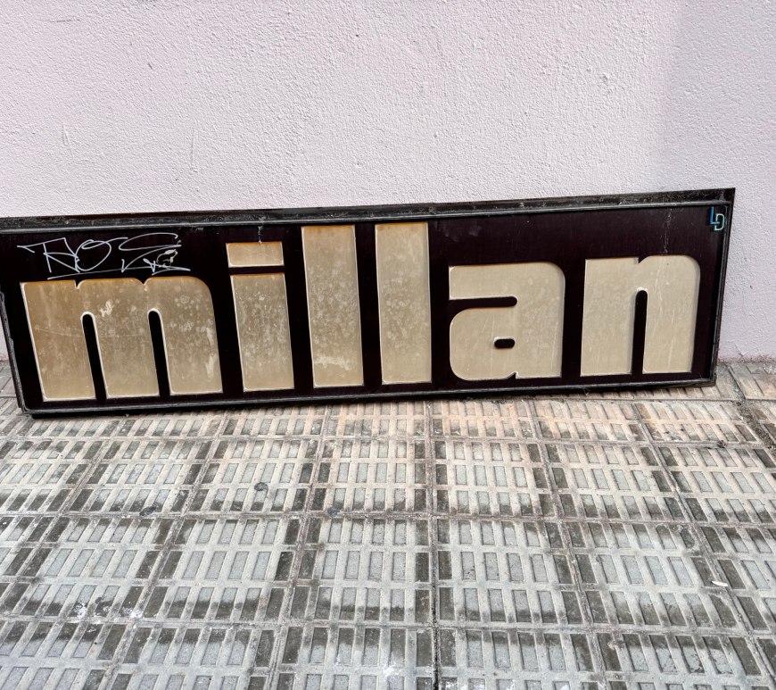 Millan «Bricolage – Material eléctrico – Útiles – Artículos – Herramientas»Avenida Príncipe de Asturias, esquina con la calle Regimiento de Toledo Rótulo en plexiglás realizado por Luminosos Duero, como indica la firma «LD» en la esquina superior derecha. El comercio cerró por jubilación de su propietario en 2014. El local permaneció cerrado hasta noviembre de 2025. A este rótulo sobre la puerta del comercio acompañaban … Continúa leyendo Millan