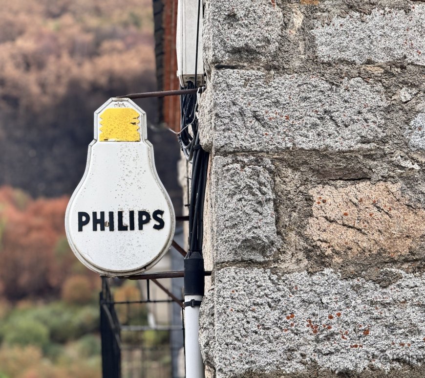 Rótulo luminoso de Philips. Antiguo comercio «del zapatero». Calle Margareu, 6. Porto de Sanabria (Zamora). El bajo de esta casa, que en su día fue salón de baile, acogió hasta hace dos o tres décadas el comercio del zapatero. Fue conocido así porque, además de vender productos de higiene personal, telas, botones, ropa interior, televisiones y relojes ,su propietario confeccionaba y arreglaba zapatos por encargo. … Continúa leyendo Philips